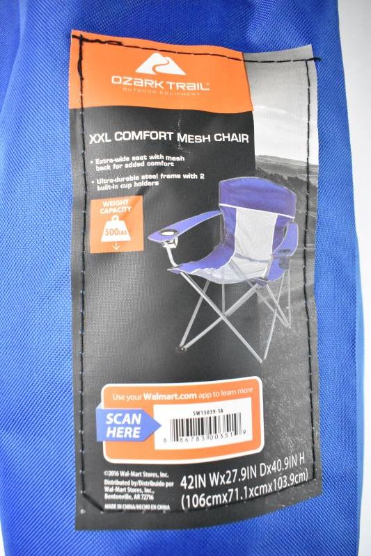 XXL Comfort Mesh Camp Chair by Ozark Trail Blue & Gray with Blue Bag - New