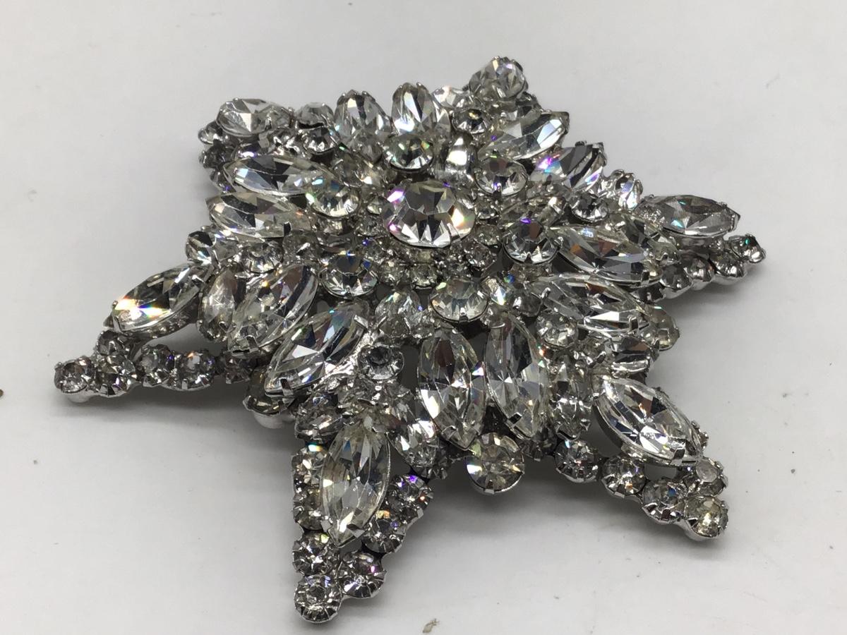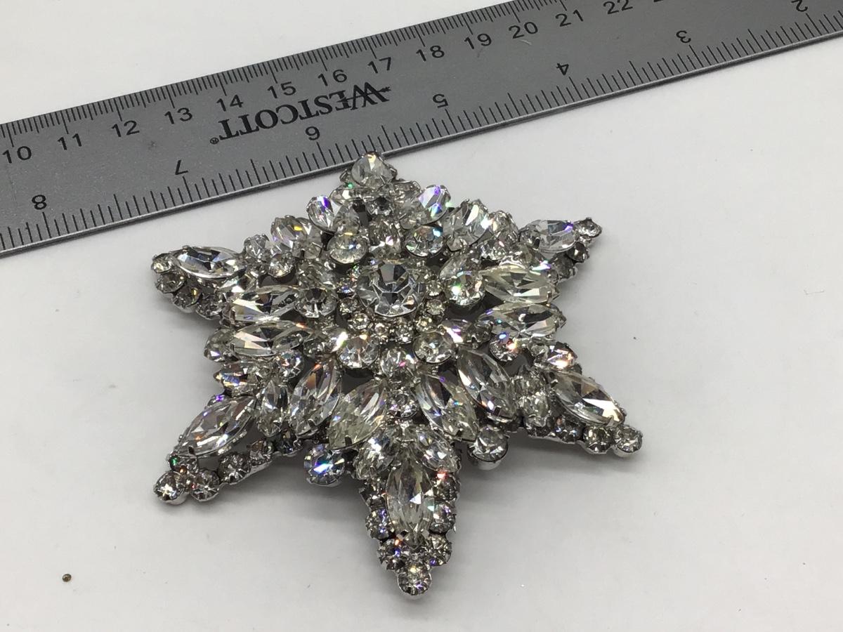 XXLarge Faceted Rhinestone Brooch close To 4 inch tip to tip