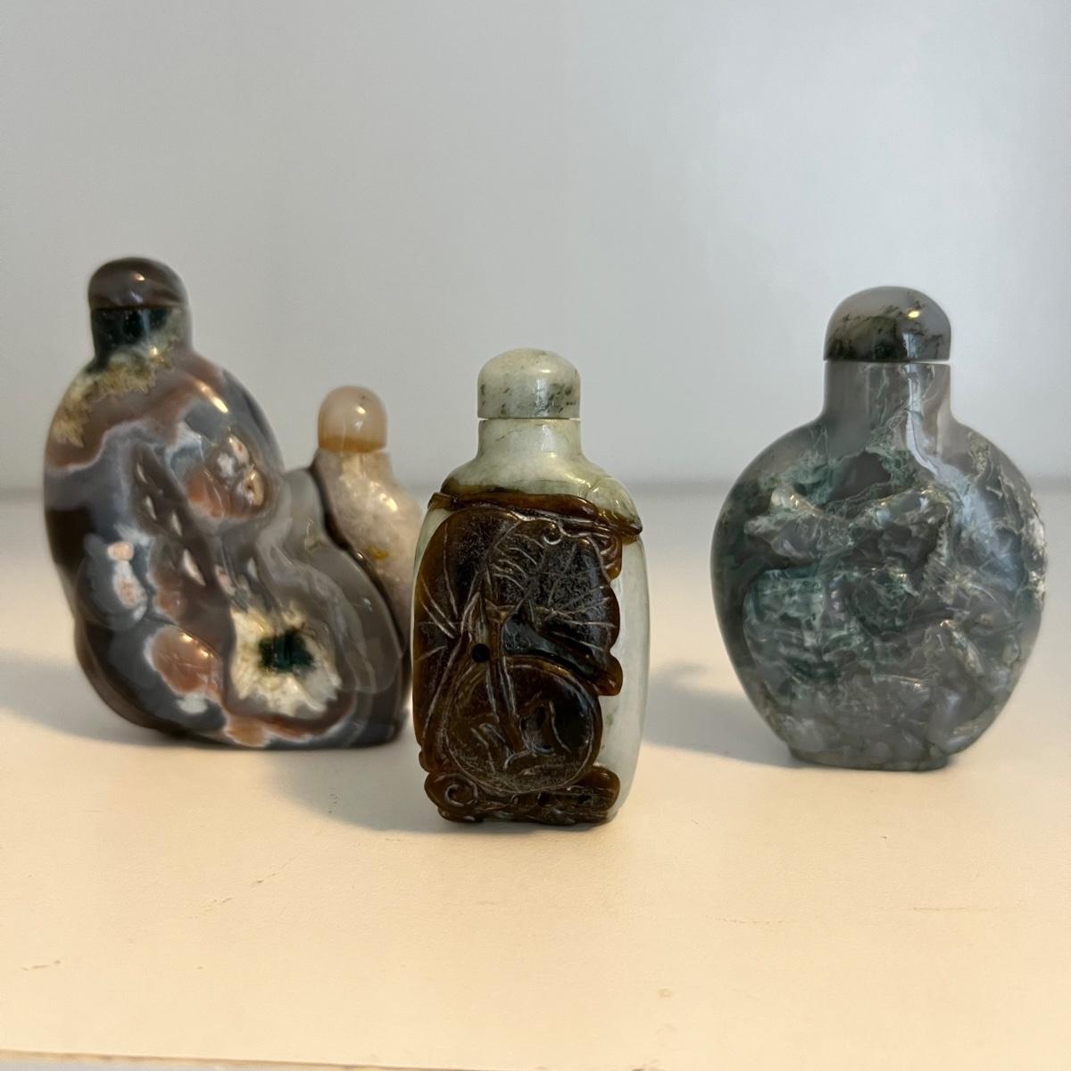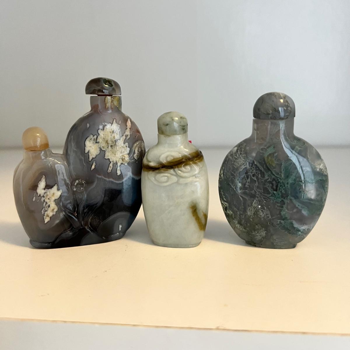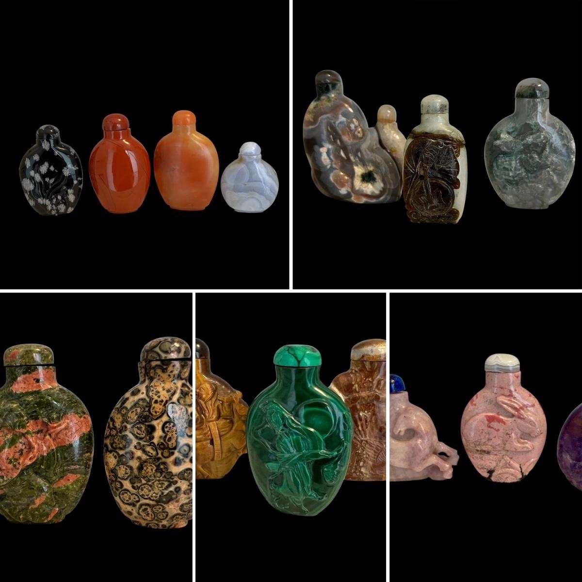 15 Stone Snuff Bottles - Jade, Snow Obsidian & More (LR-RG)
