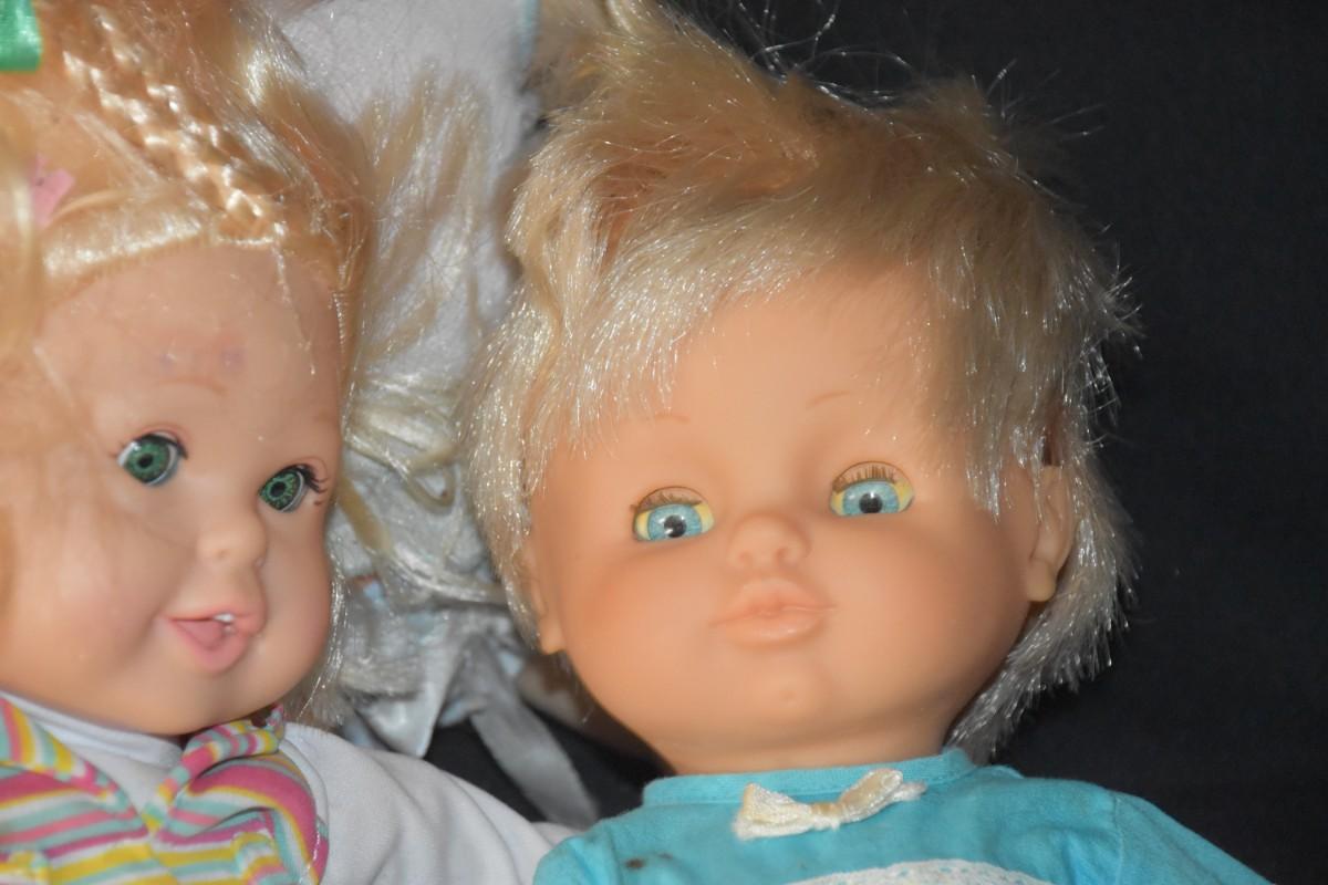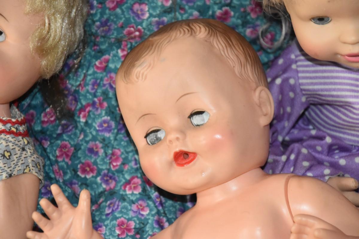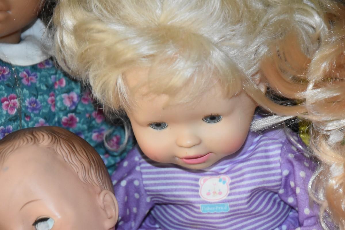 Plastic dolls. Mostly older in age. Posables, Fisher Price. Made in Spain.