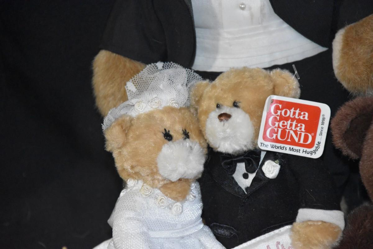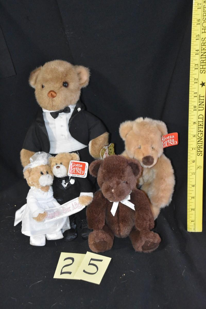 5 Gund Bears. Bride and groom set, groom, and two poseable bears.