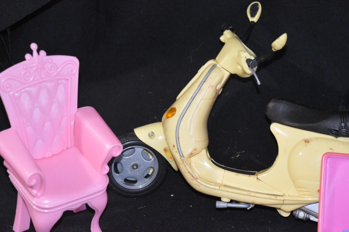 Barbie's things. Ken bought these things for Barbie, then he dumped her, and she has to sell them to pay the rent. Poor baby.