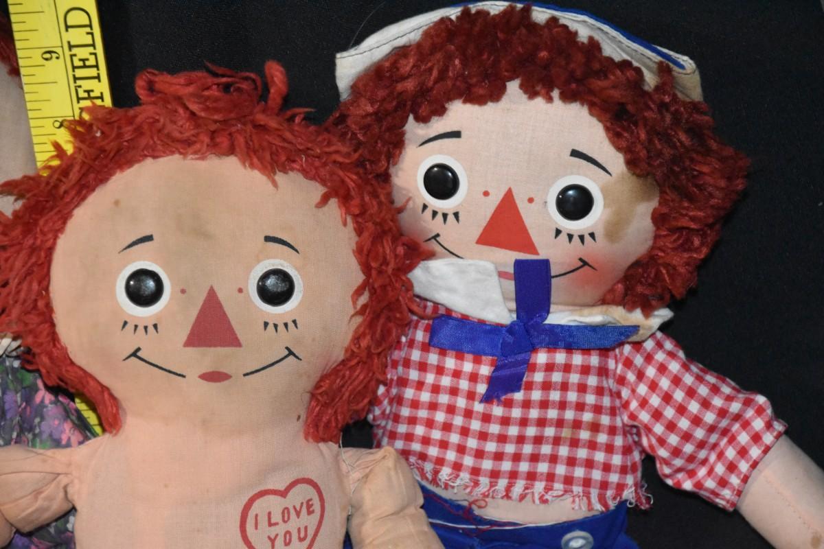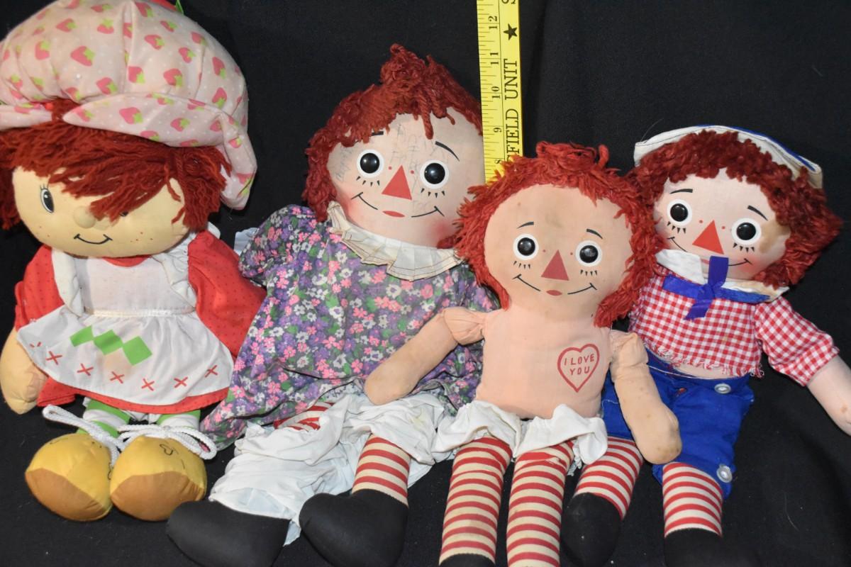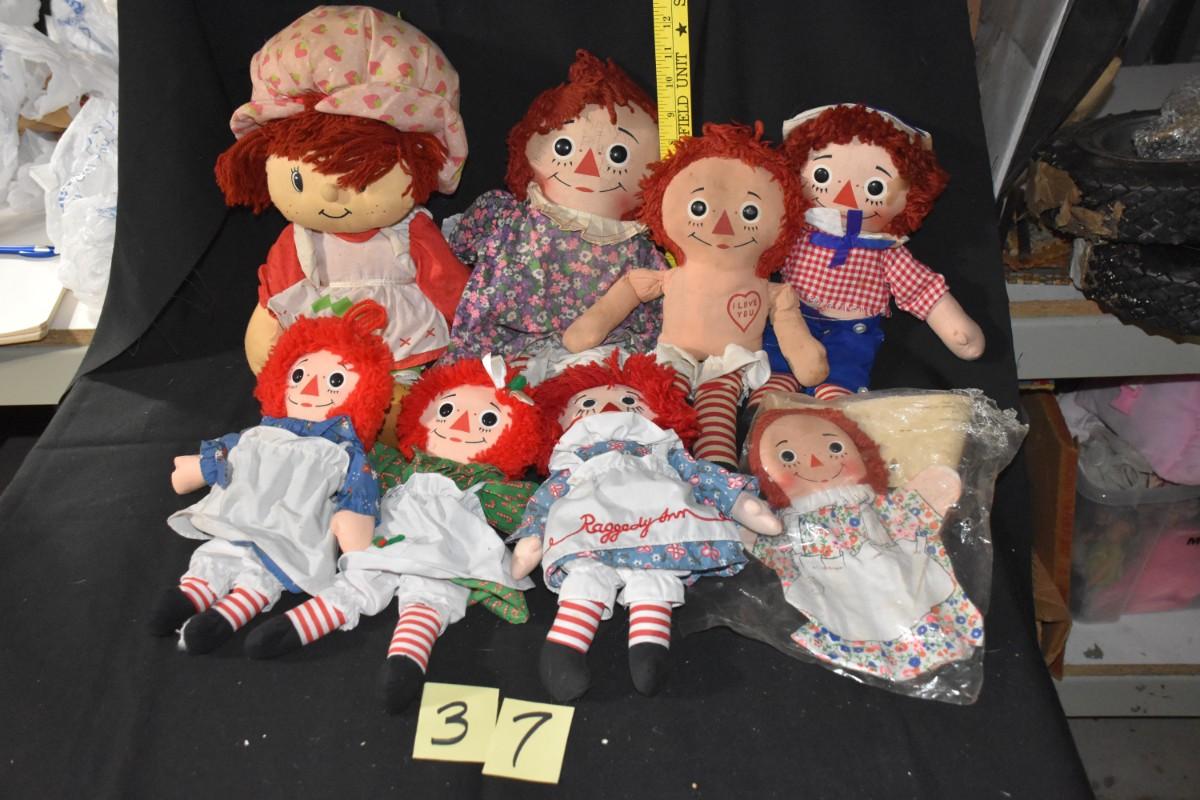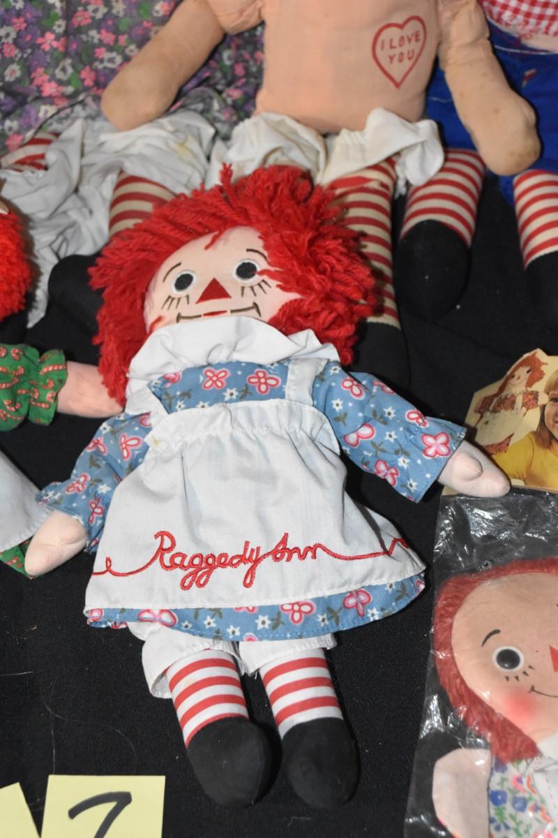 Lot of 6 Raggedy Ann dolls plus one Strawberry Shortcake & One boy doll. All sorts and types and ages.