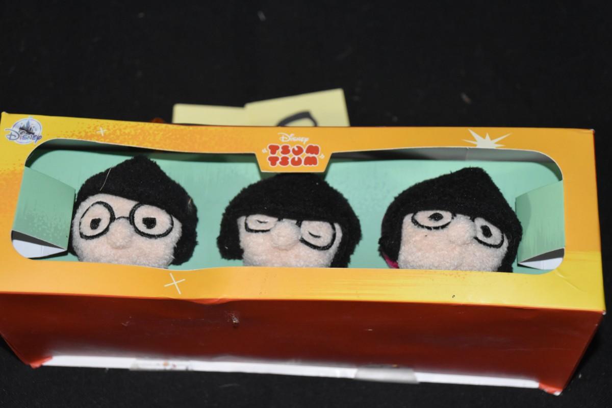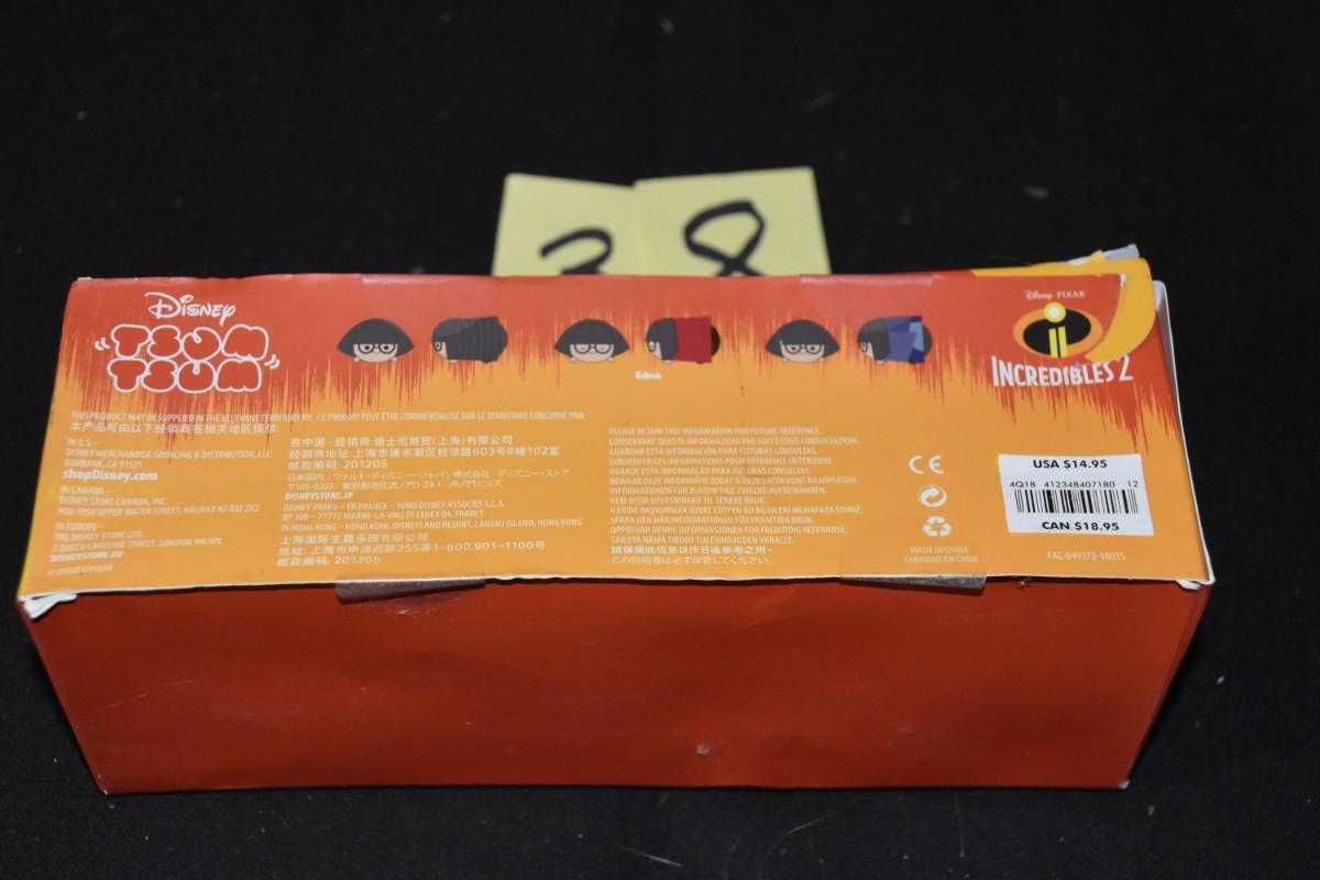 Appears to be unopened box three original Tsum Tsum heads from Incredibles II.