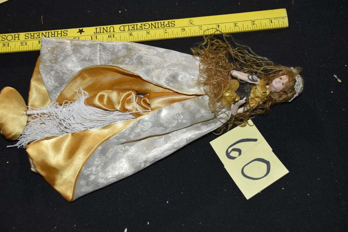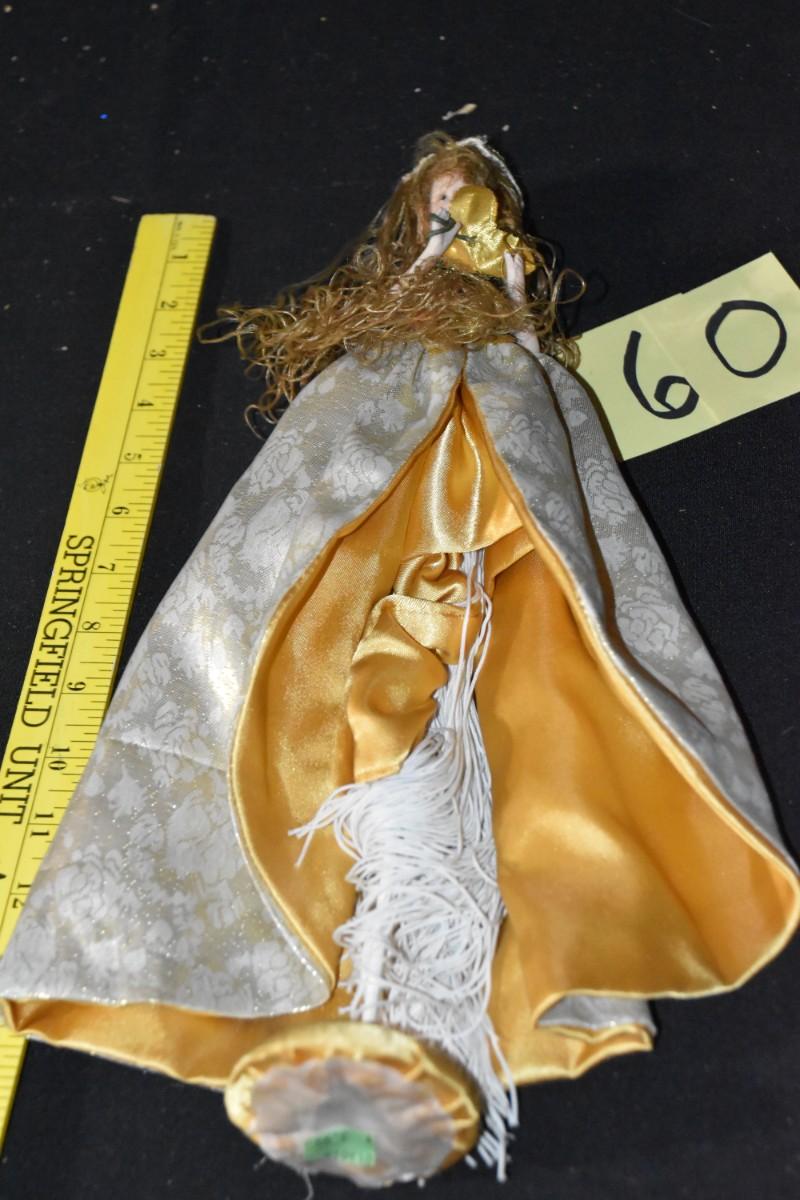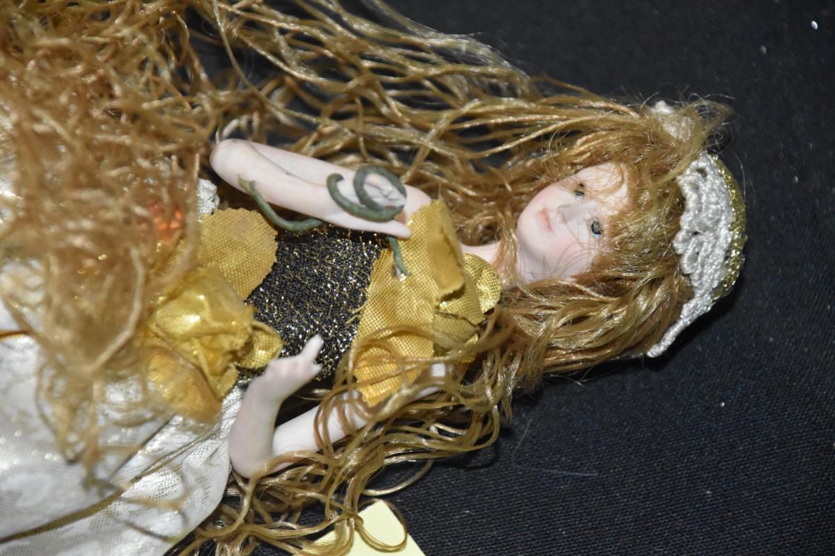 Unique doll that is basically a head on a stand with costume and decorations. Really interesting! Appear to be porcelain. By Duck House Heirloom dolls
