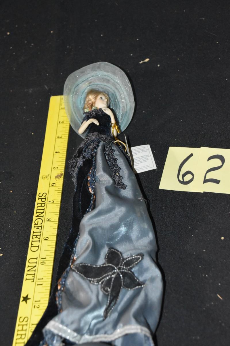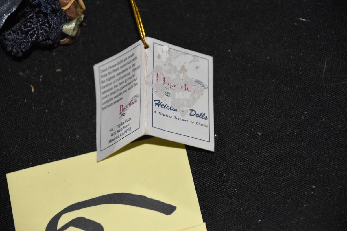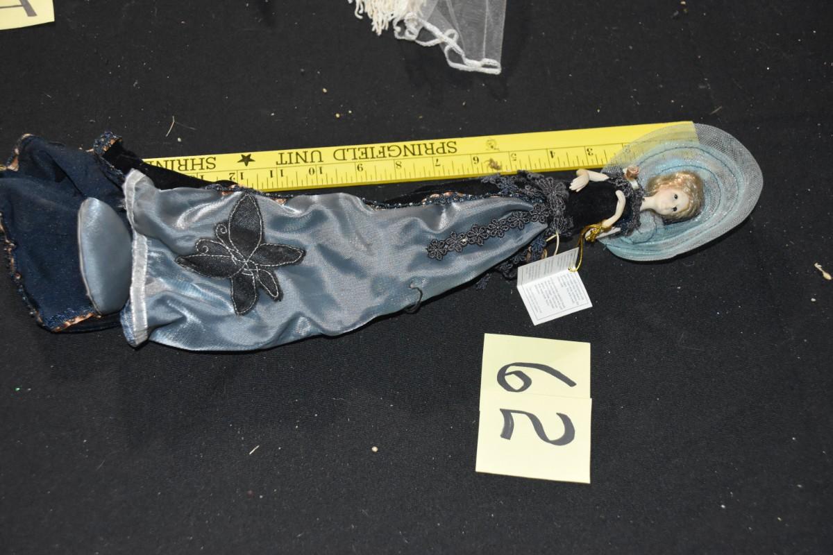 Another of these interesting dolls on stands that are basically a porcelain type head with dress and decorations without a body. By Duck House Heirloom Dolls.