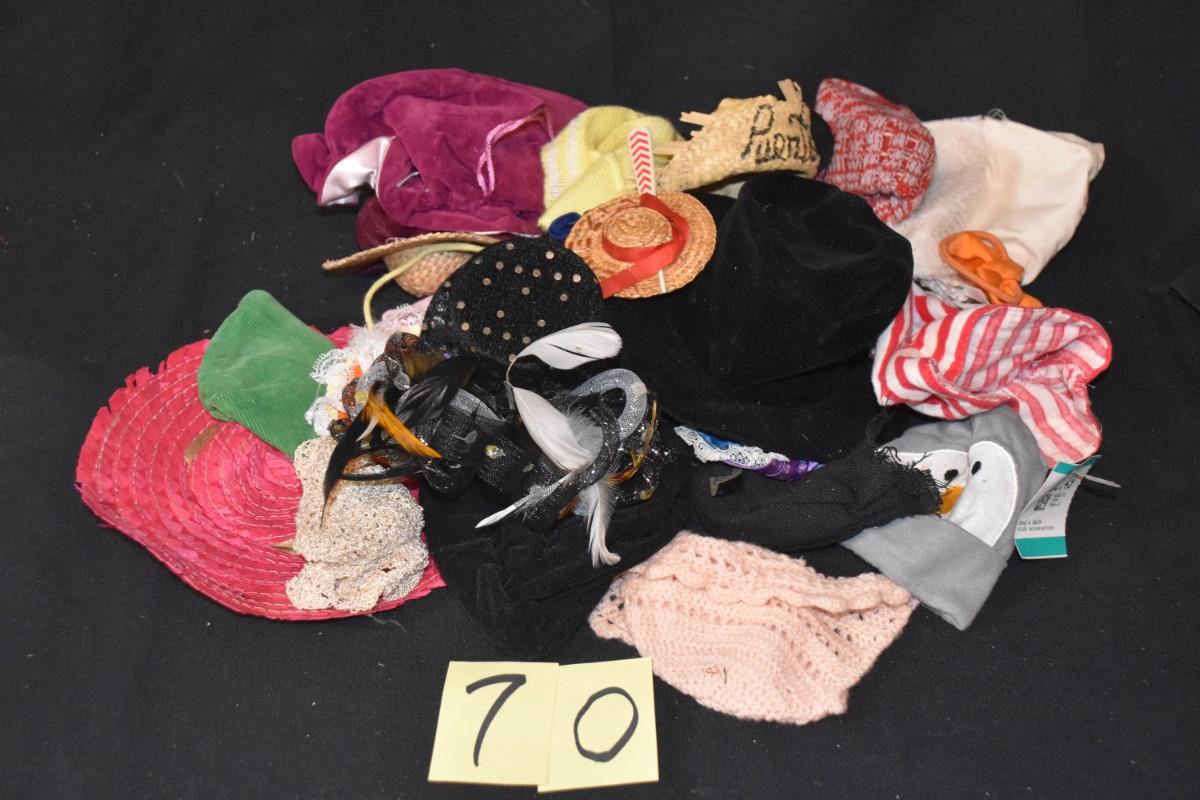 Large lot of doll hats of all sizes, colors and types. Didn't count, but there are dozens of them.