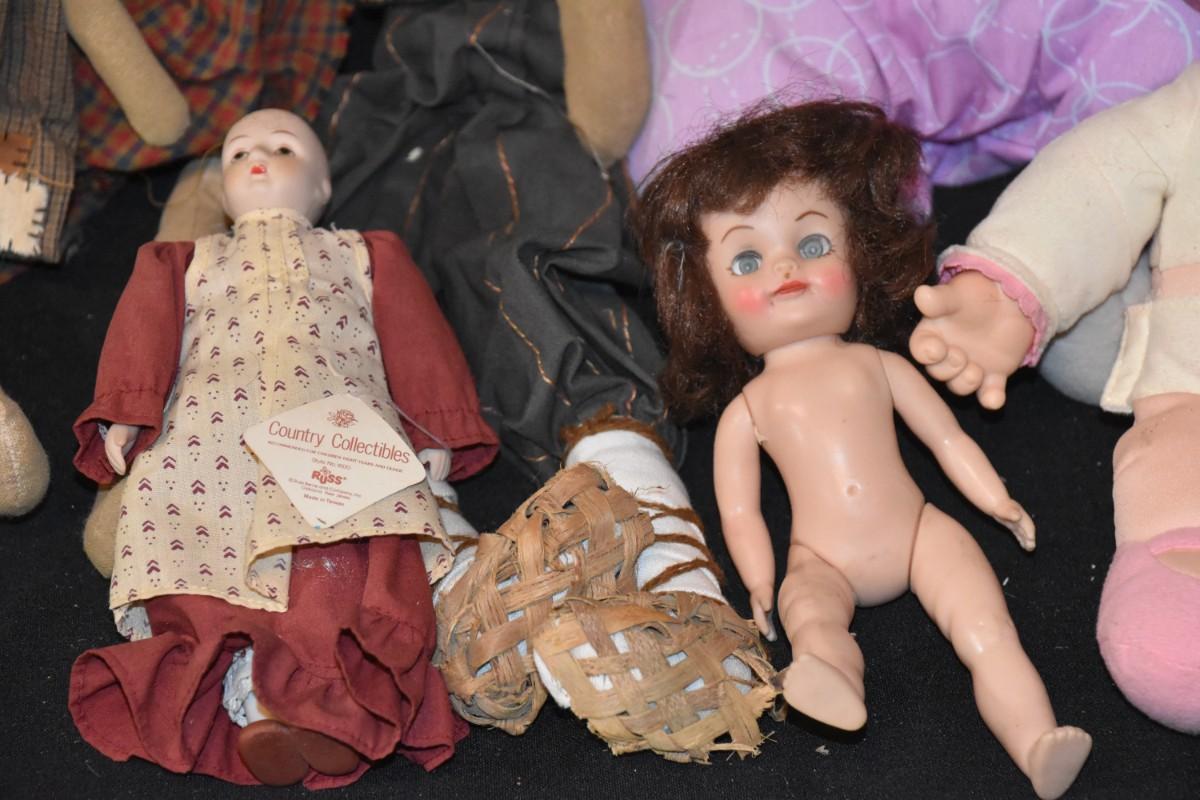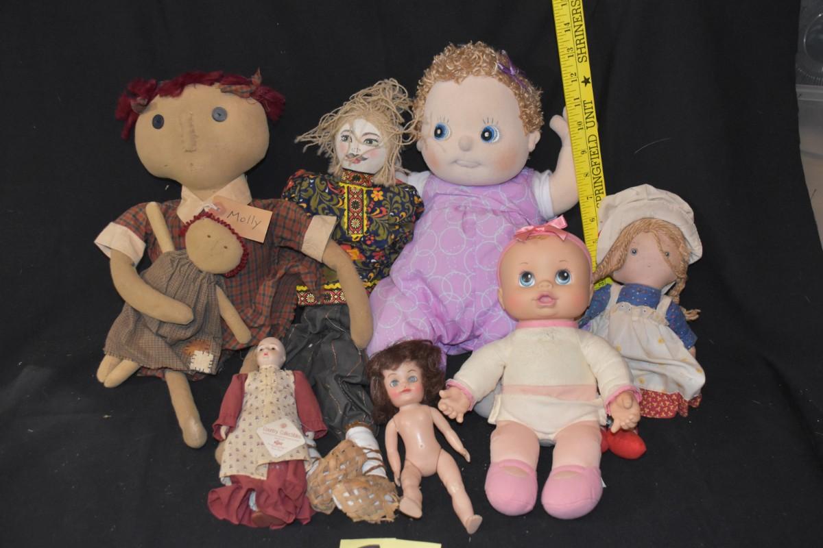 Lot of 8 dolls, some soft body, some plastic body posable, some plastic head soft body, some all soft, this is a misc lot.