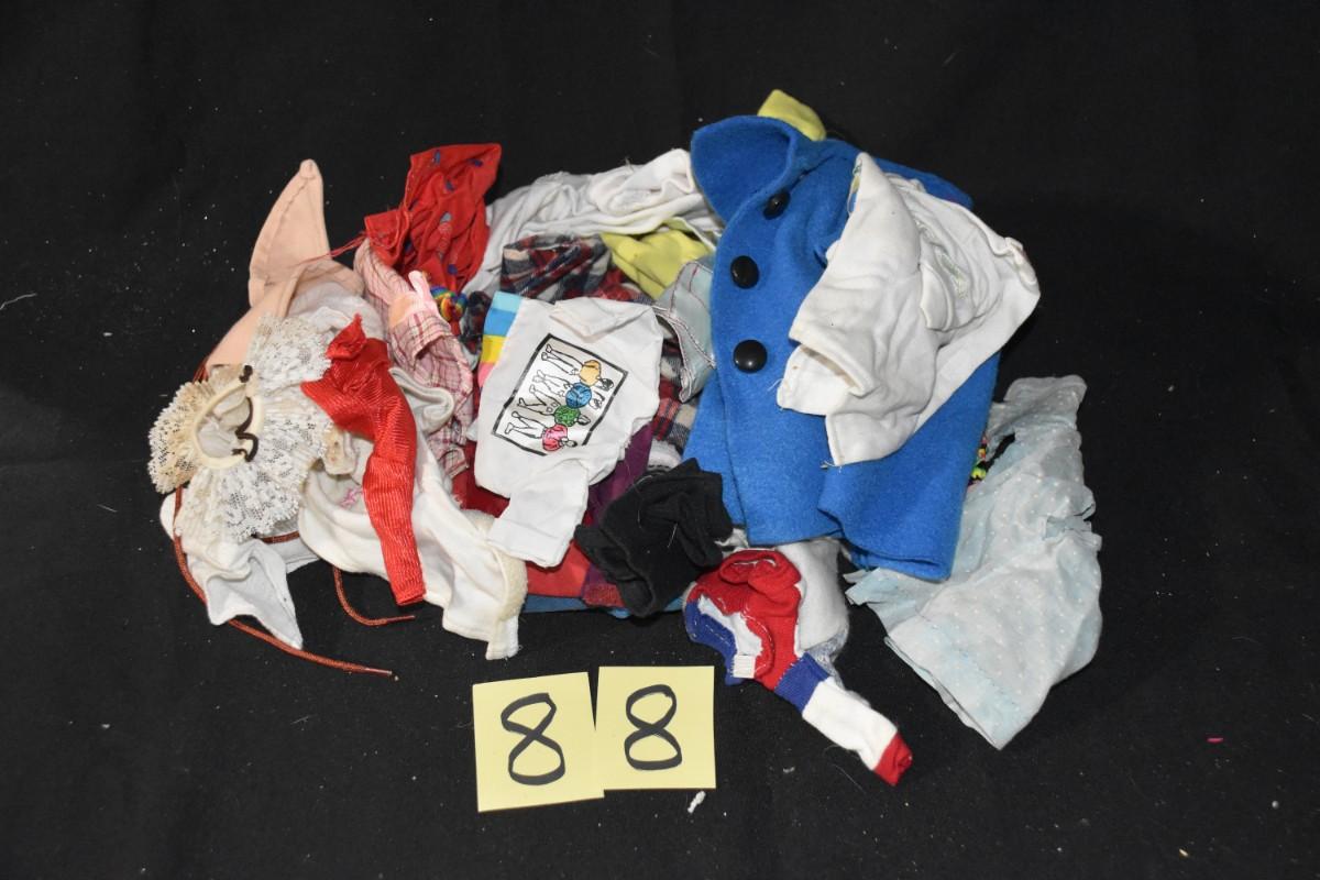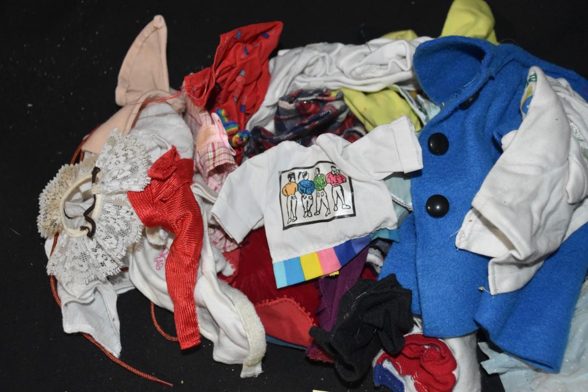 Dozens of tops for dolls of all sizes including Barbie. Tops, sweaters, coats, t's, etc. Sold as one lot.