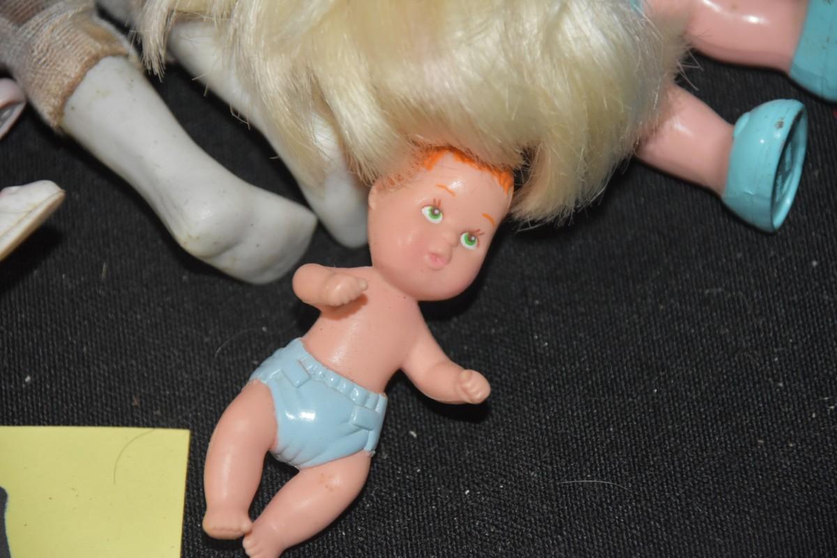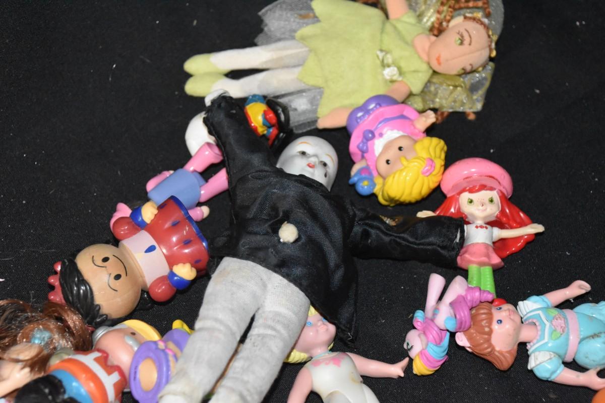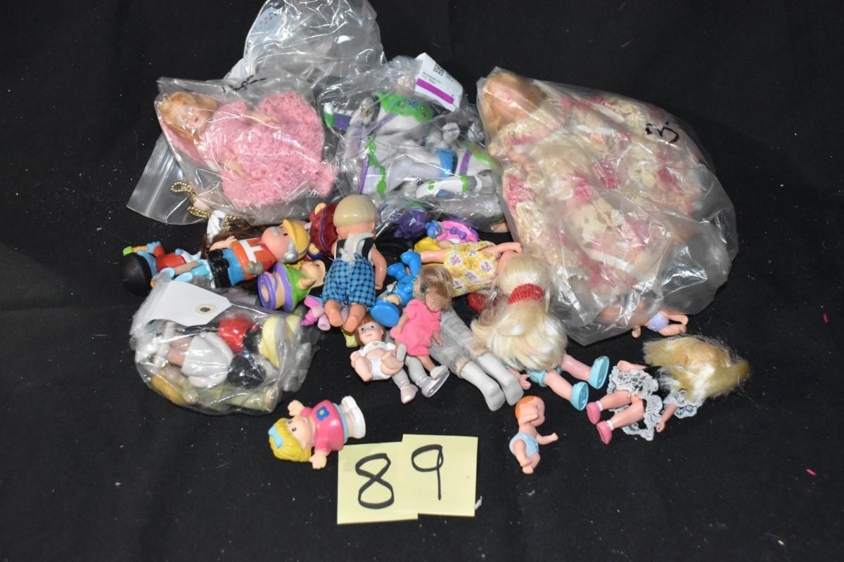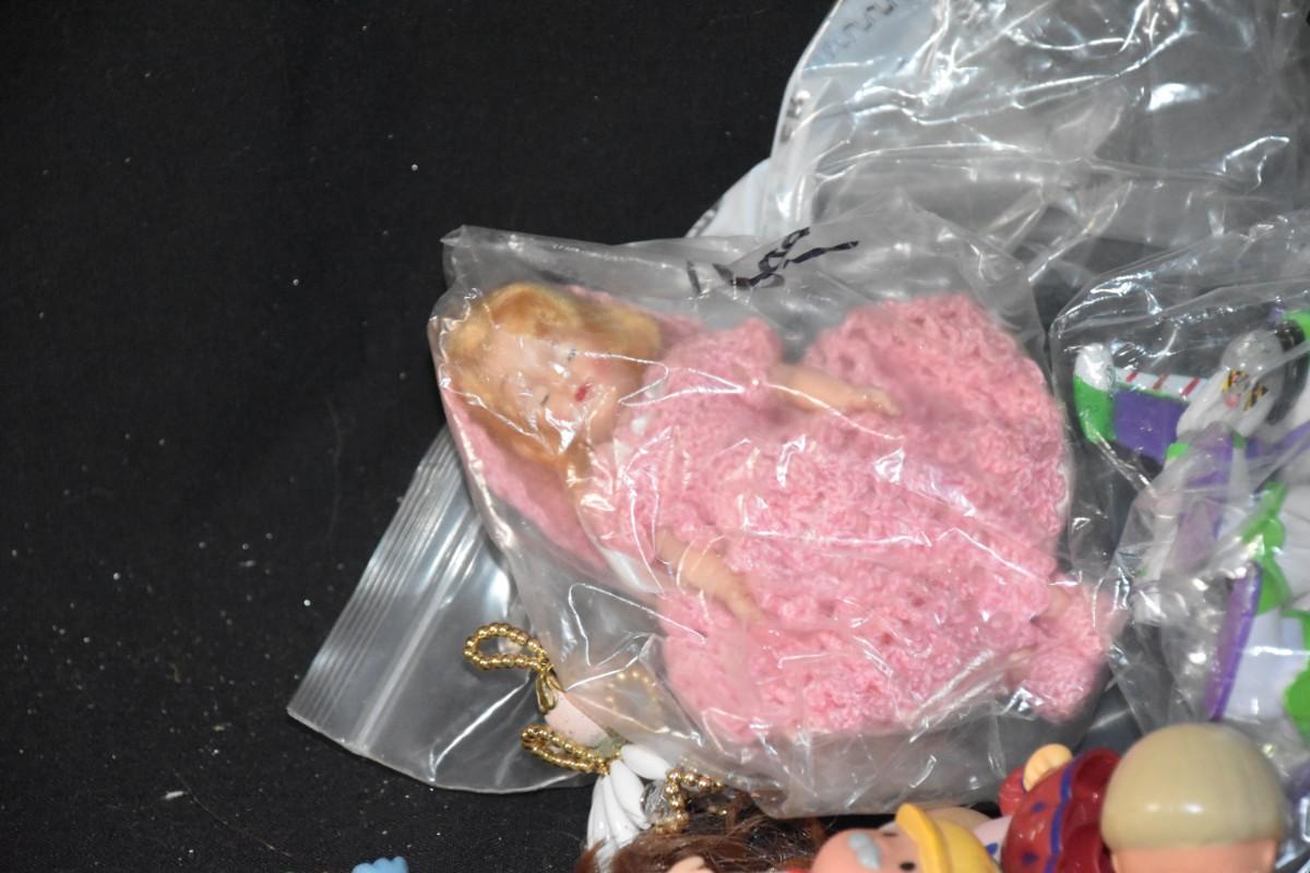 Dozens of little dolls, all sold as one lot. Some Disney, some older, some with crochet dresses.