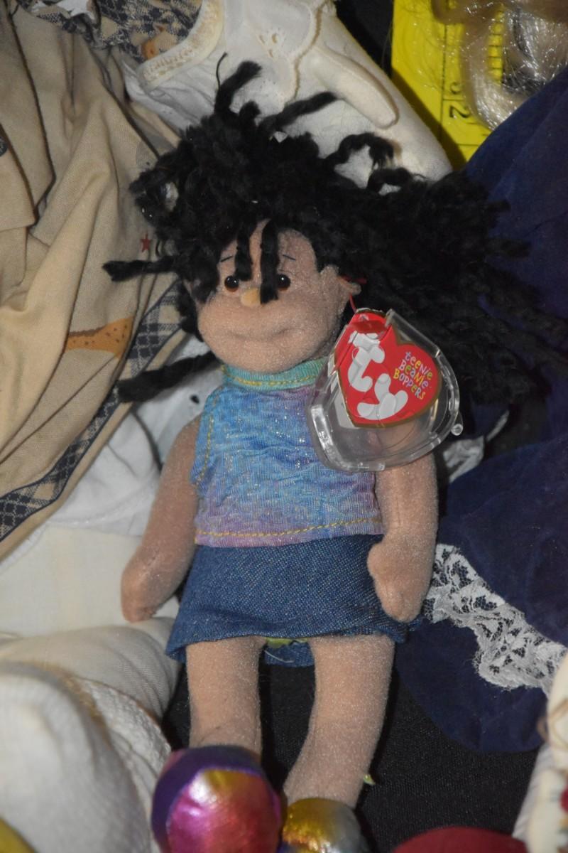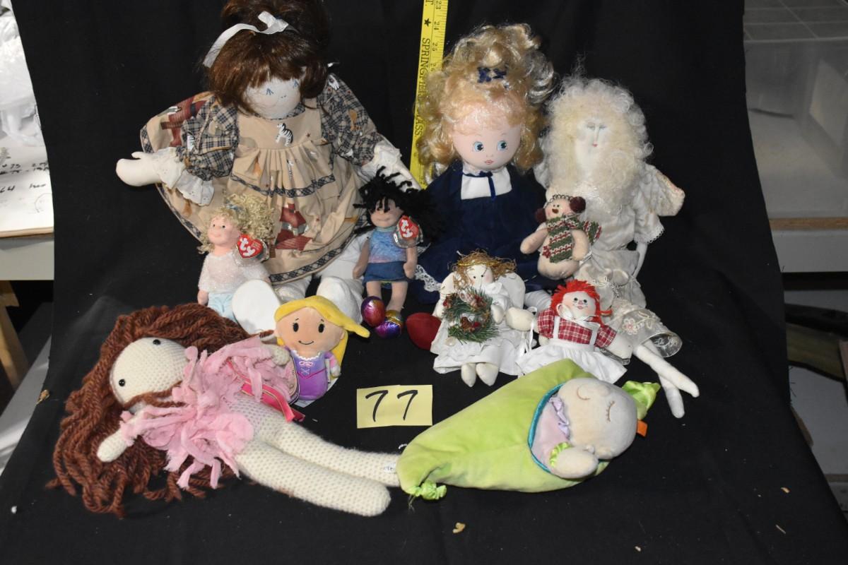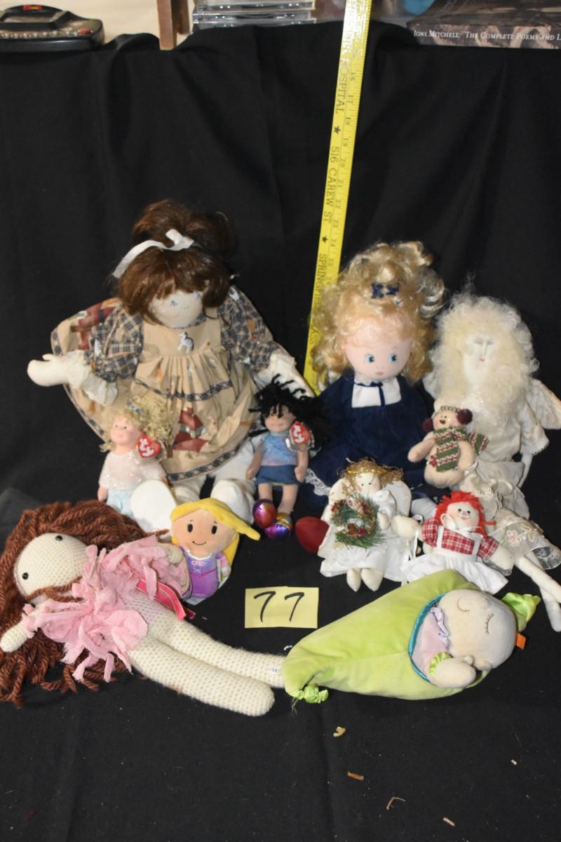 A dozen different dolls, Two Ty dolls, a baby in a pea pod, some real cuties in here.