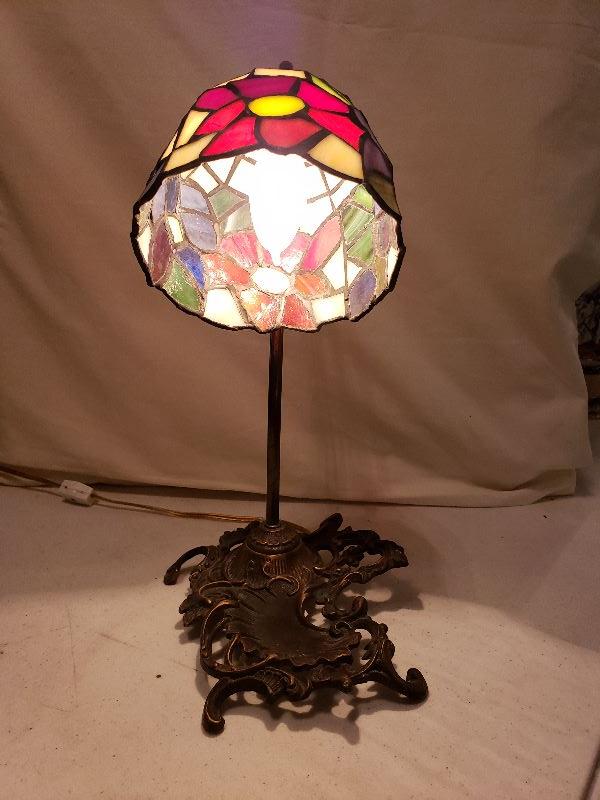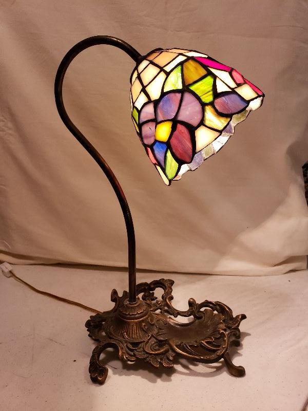 Vintage Slag Glass Table Lamp, 15" H