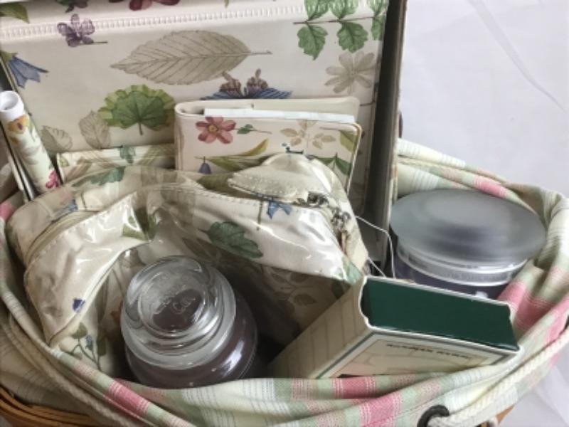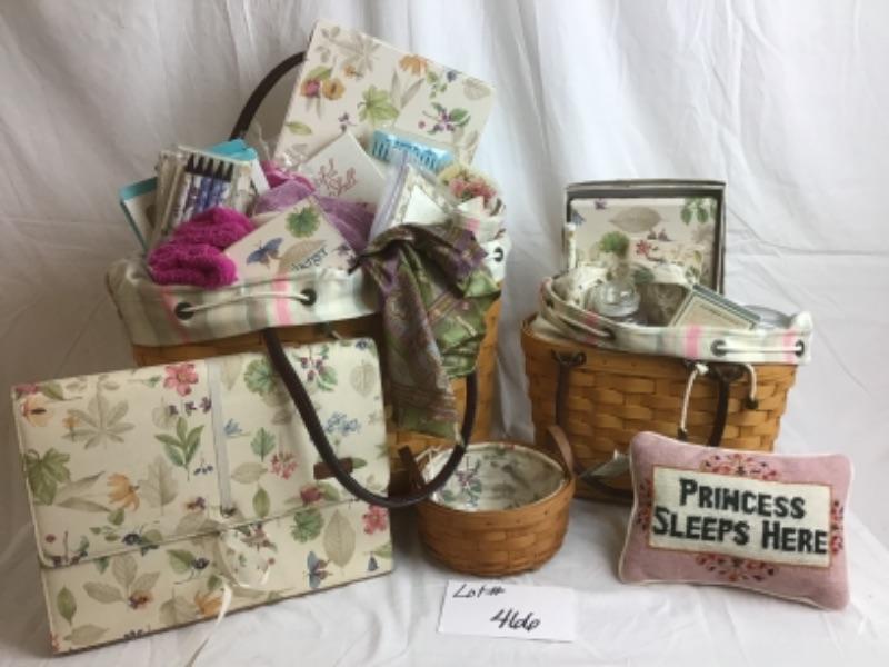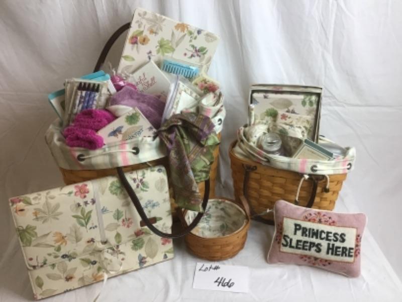 Here we have a mother and daughter gift baskets is filled with things like Longaberger Stationary, Note Pads, Cosmetics Bag, Small Pillow,