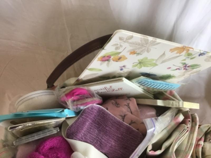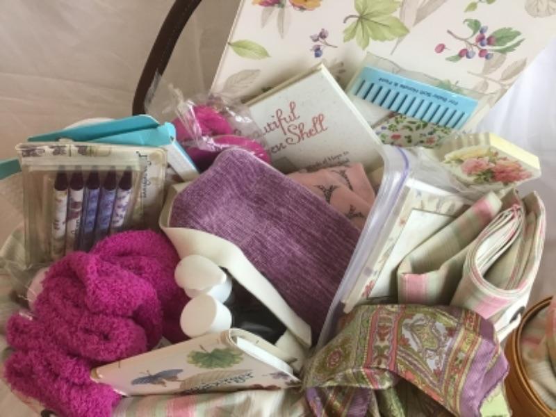 Longaberger File Folder, Longaberger Pens/Note Pads, Scarf, Socks, Soaps, Lotion,candles,Slippers, Eye Cover and more.