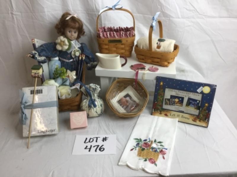 Y - 476 Doll & Longaberger Gift Basket Lot