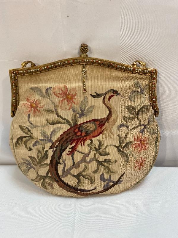 Vintage Tapestry Style Purse Bird Butterflies & Flowers