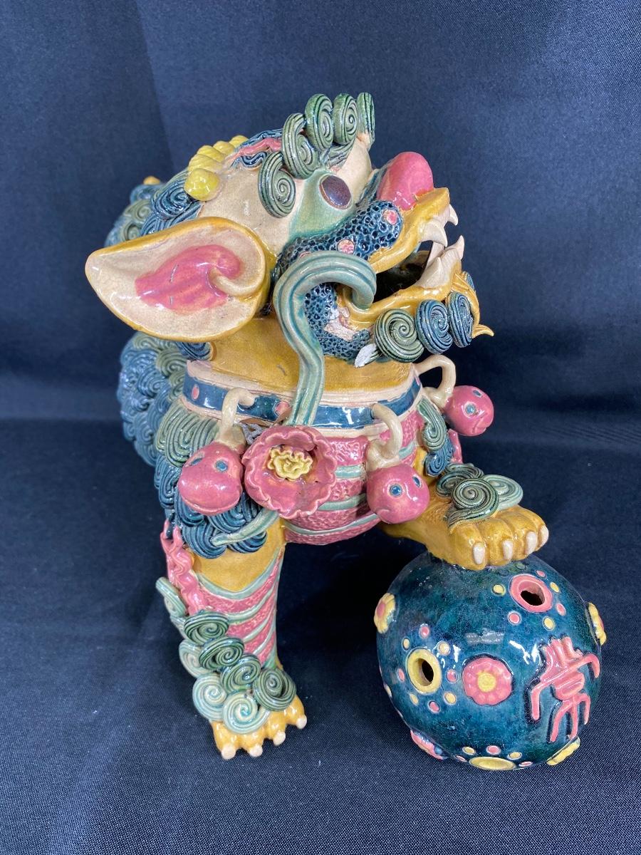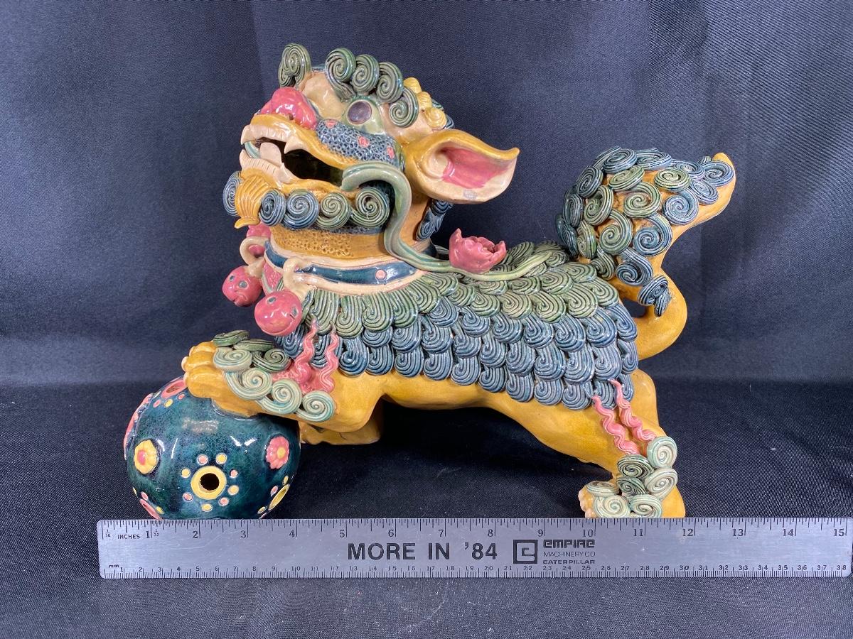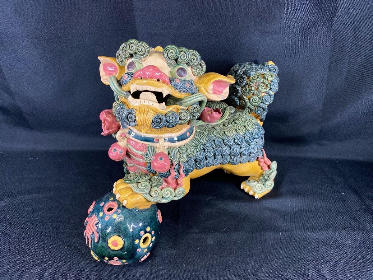 Vintage Colorful Asian Foo Dog Figurine Pottery Statue