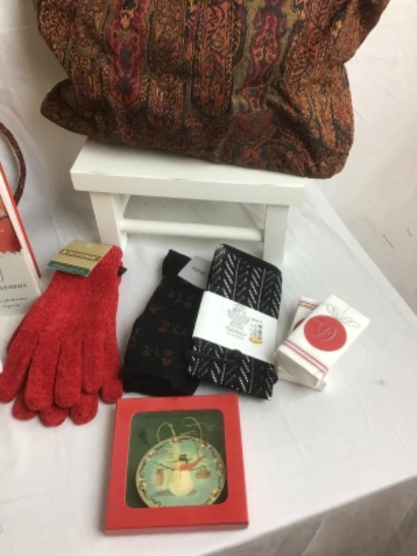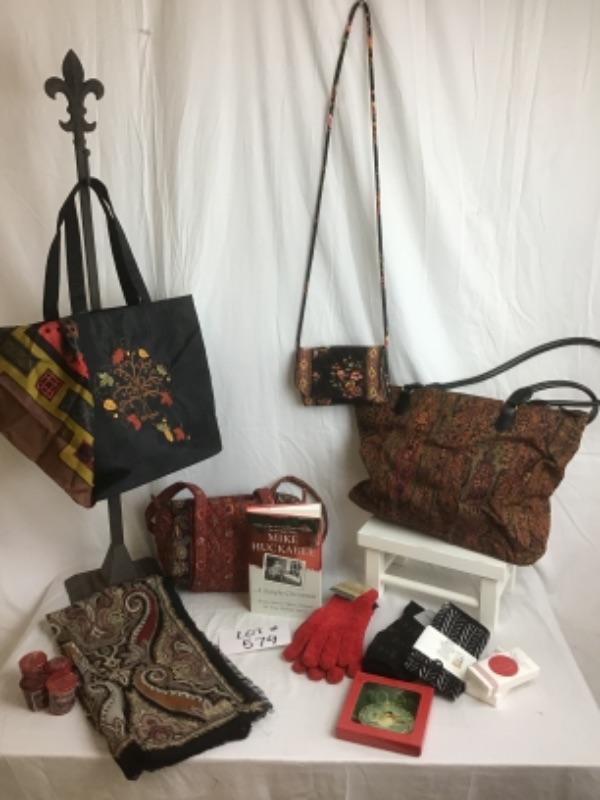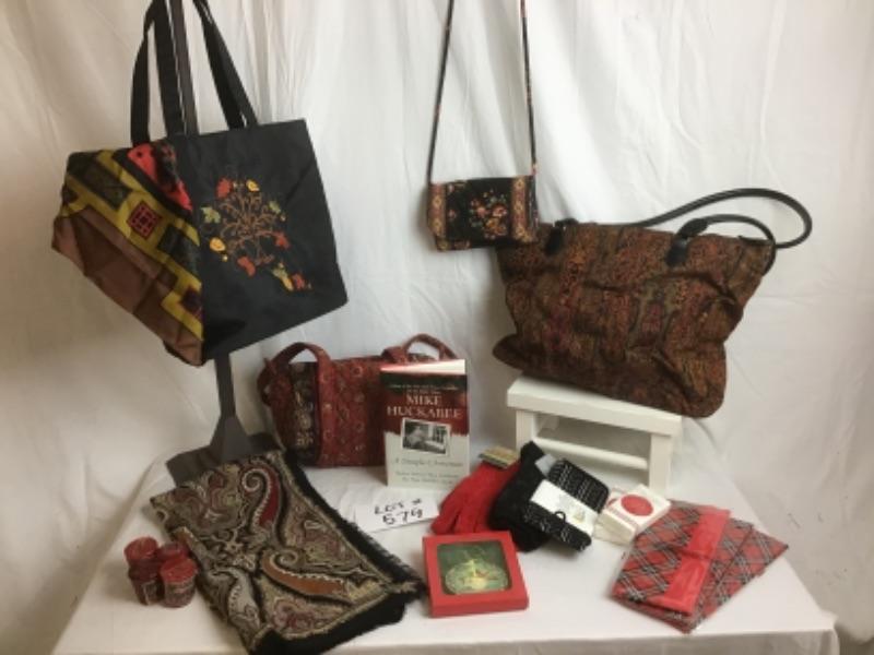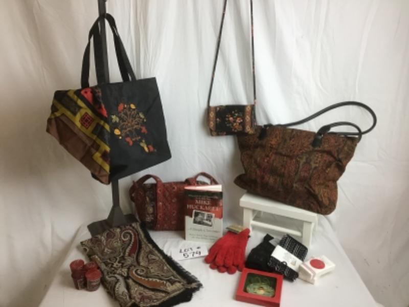 Beautiful Paisley Scarf, Paisley Handbags, Ornaments, Tissue Paper, A Simple Christmas by Mike Huckabee, Gloves,& Socks