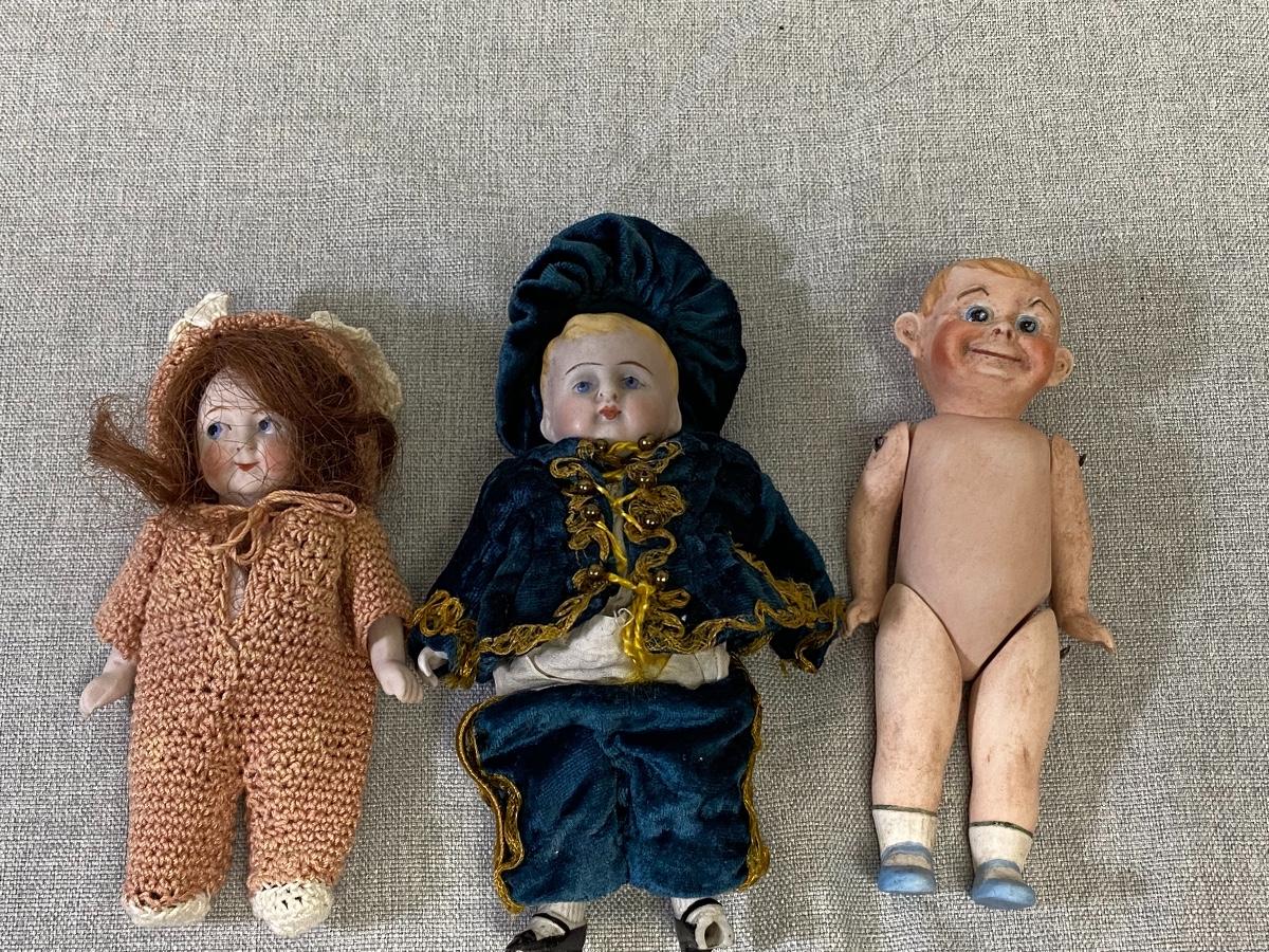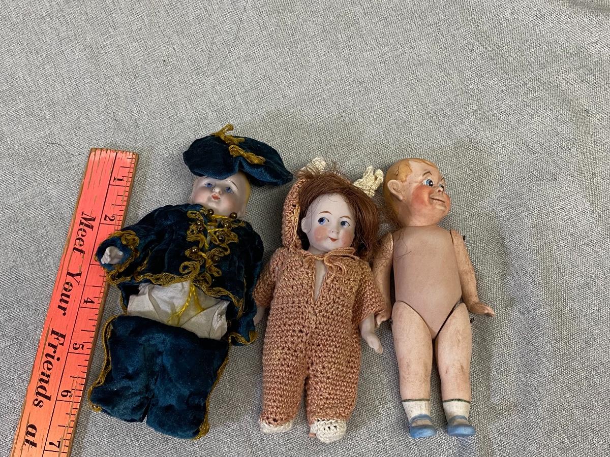 Set of 3 Antique Vintage Dollhouse Size Dolls