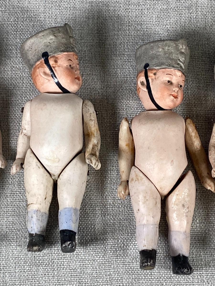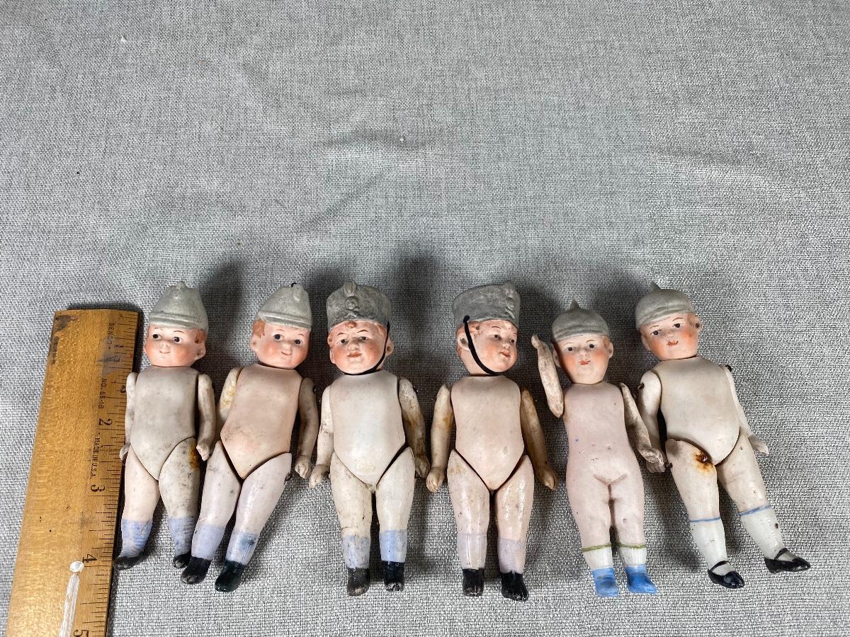 Set of 6 Bisque Soldier Dollhouse Dolls