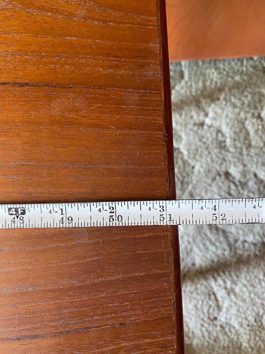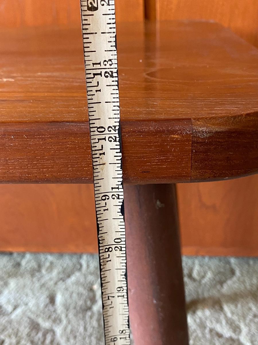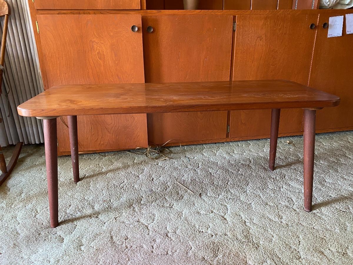 Vintage oblong shaped mid century modern coffee table. Unmarked. Stands just over 22" tall. A couple light scratches in one spot, but overall good condition. Measures about 51"x21".