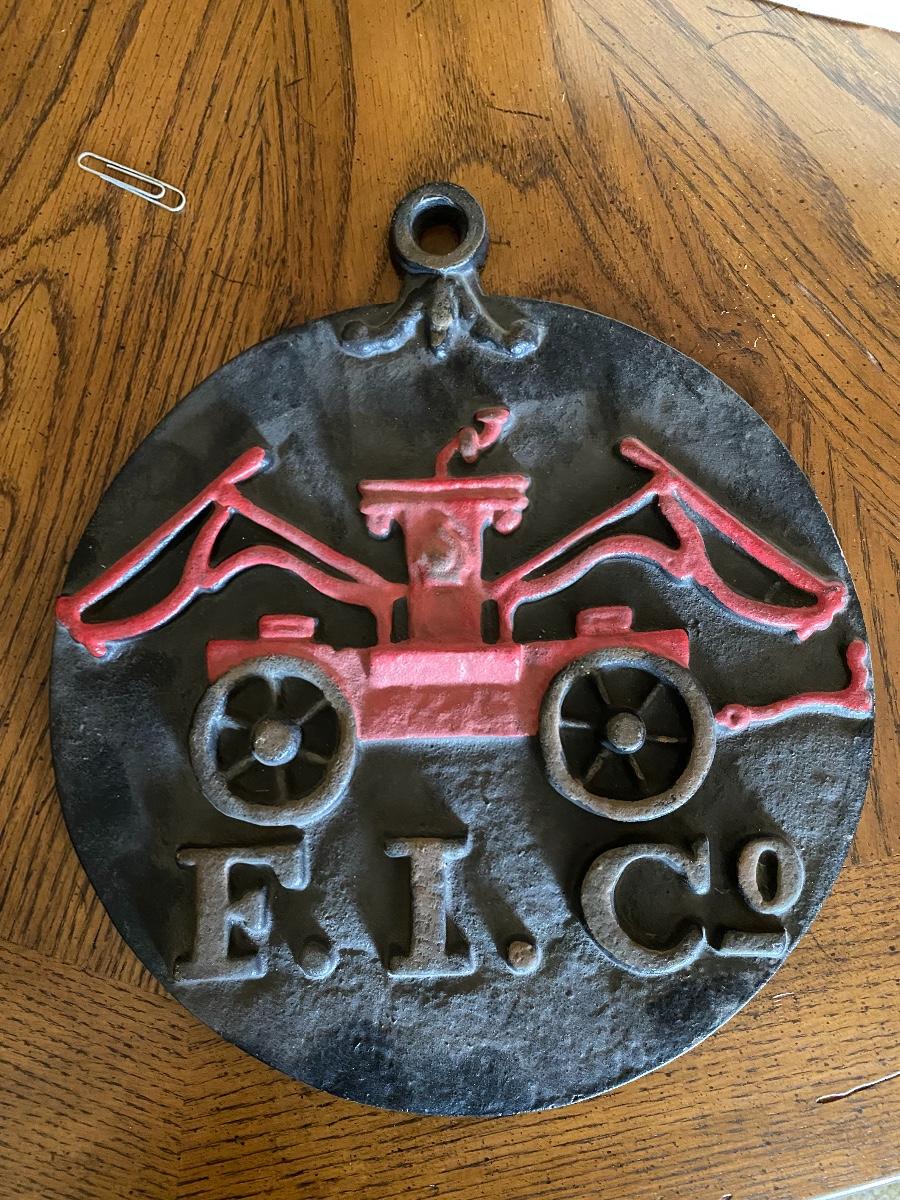 Vintage Cast Iron Fire Insurance Co Round Sign. Heavy cast iron, about 12" diameter.