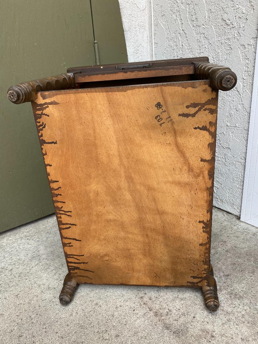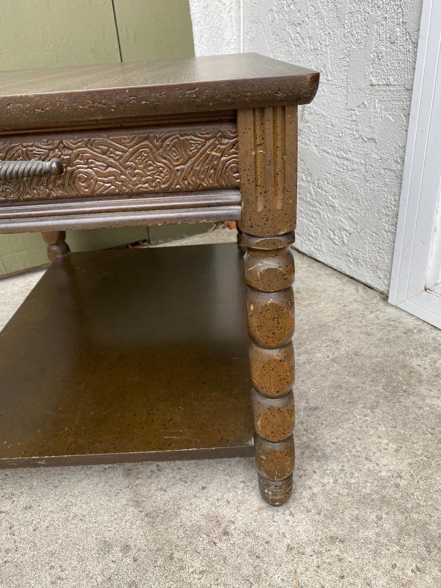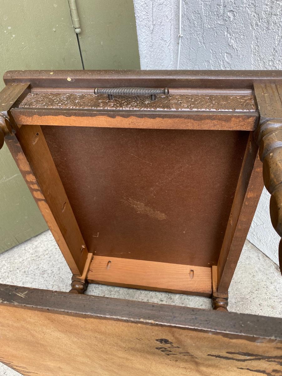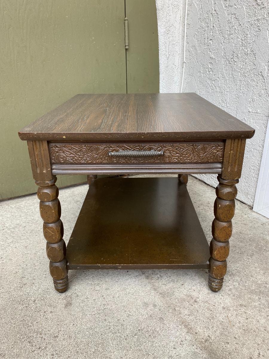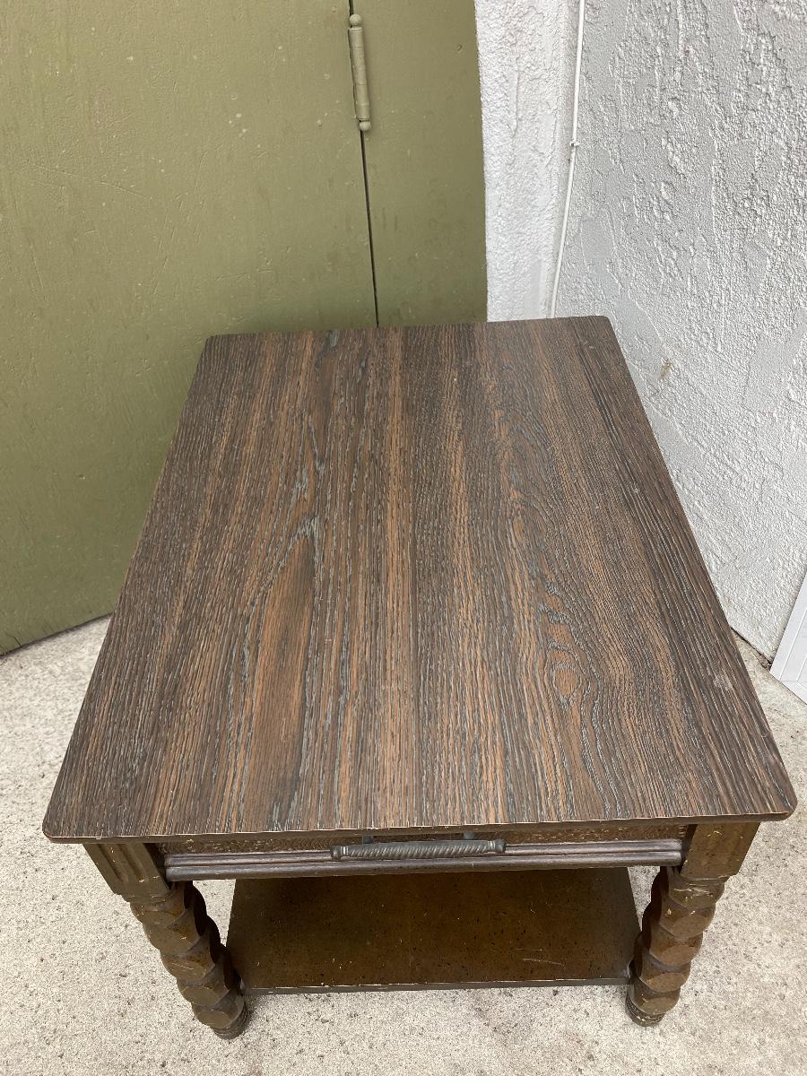 Dark Finish Vintage Side End Table. Faux drawer front. In good used condition. Some light wear.