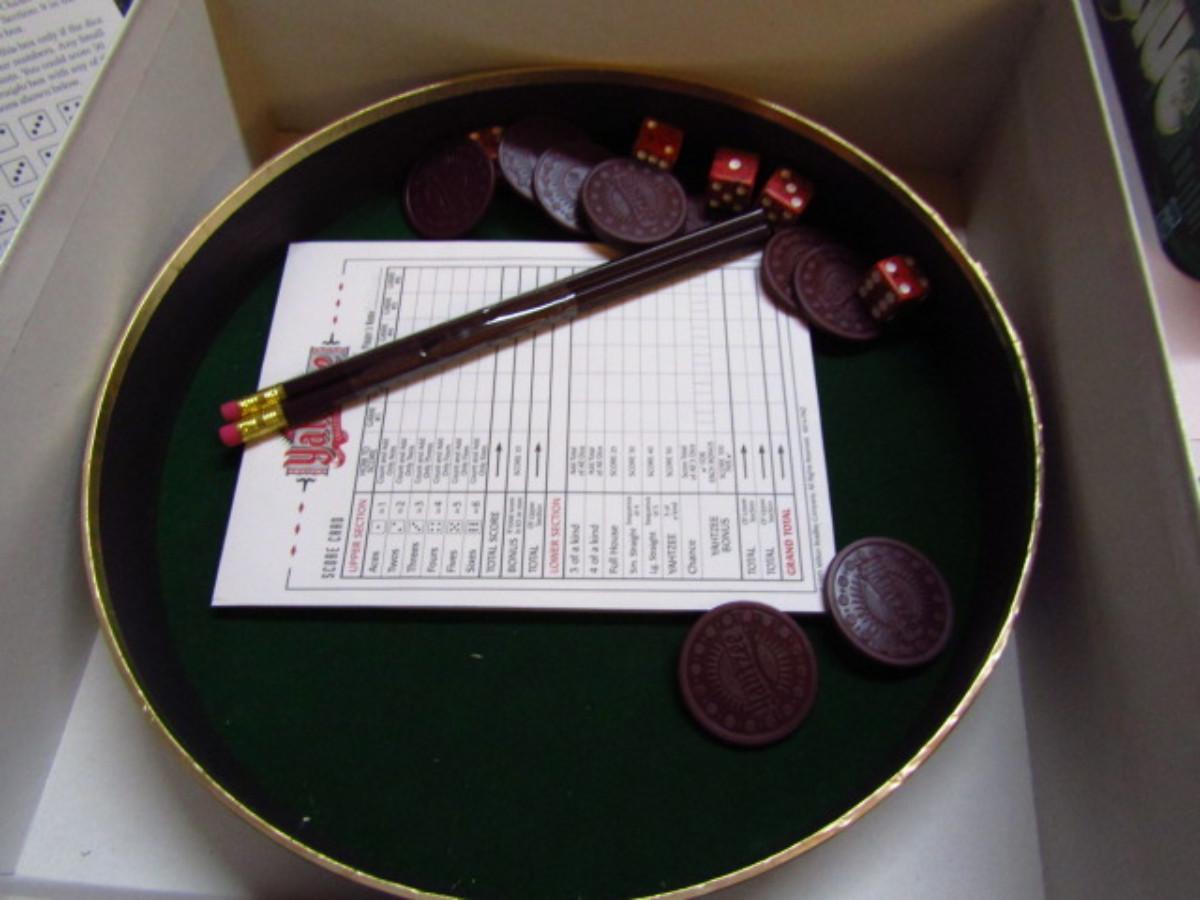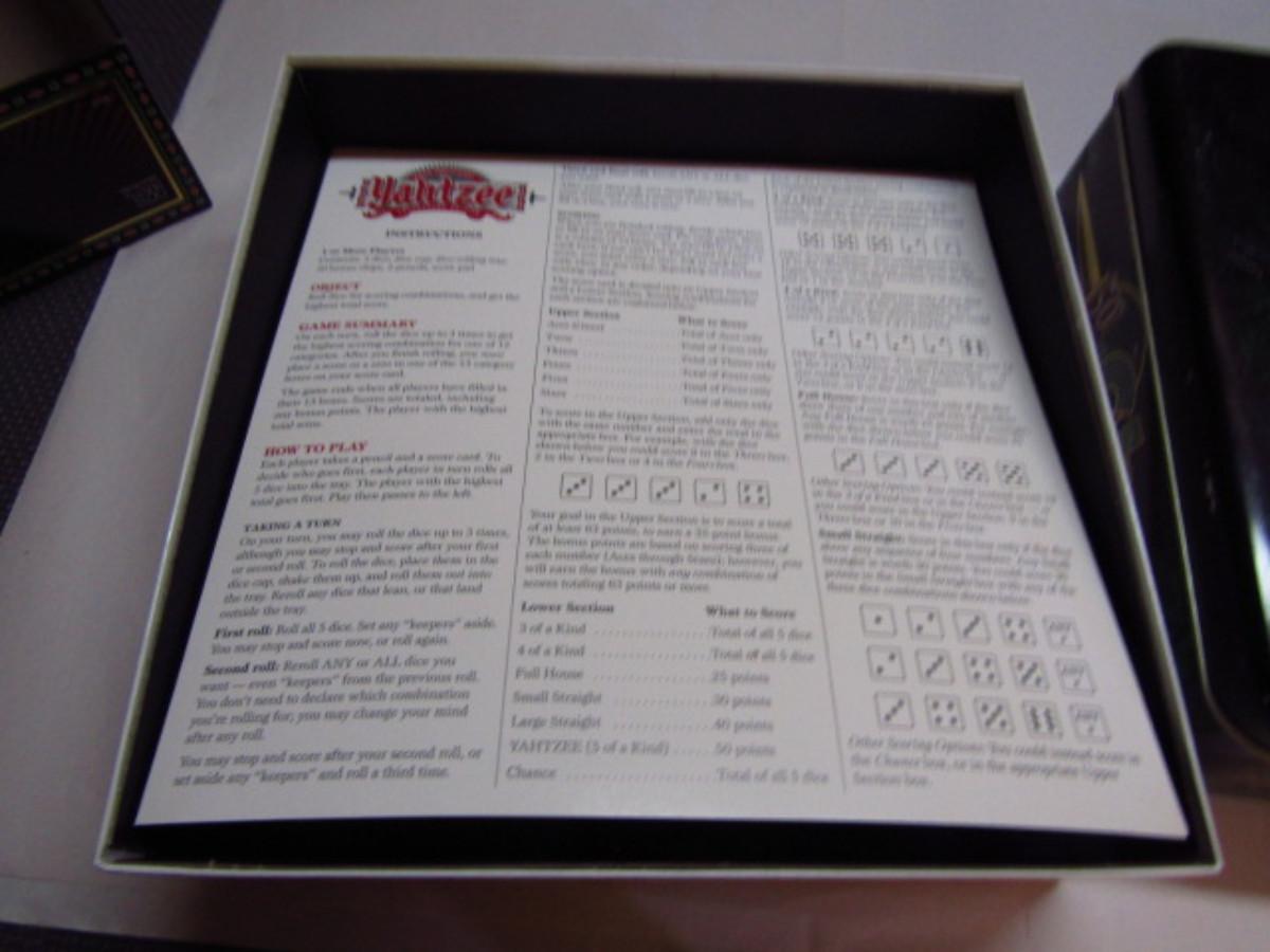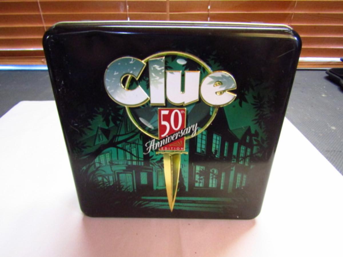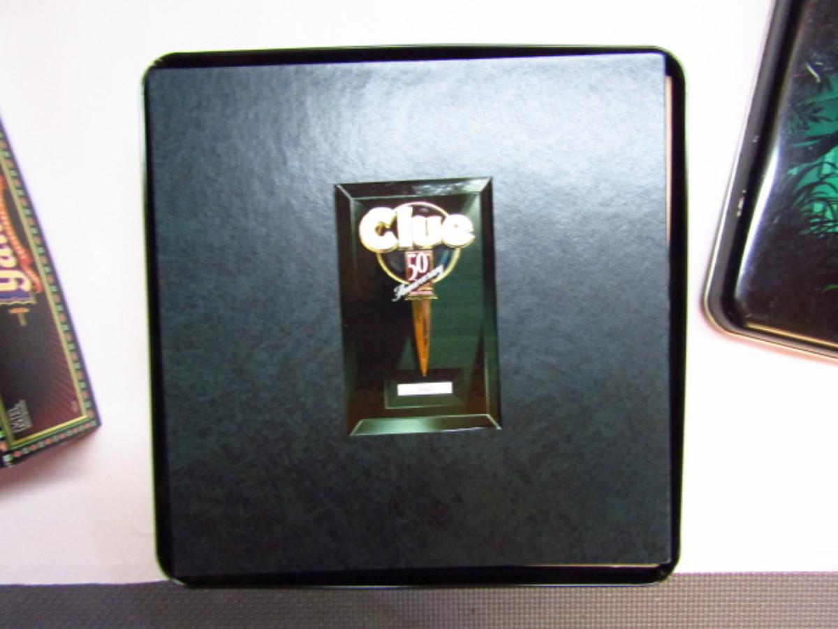 Yahtzee and Clue Boxed Games- Anniversary Editions (G). Yahtzee 40th Anniversary Collector's Edition is in cardboard box and appears to contain all pieces. Clue 50th Anniversary Edition is a numbered set in metal box and appears to be complete except for one pencil.