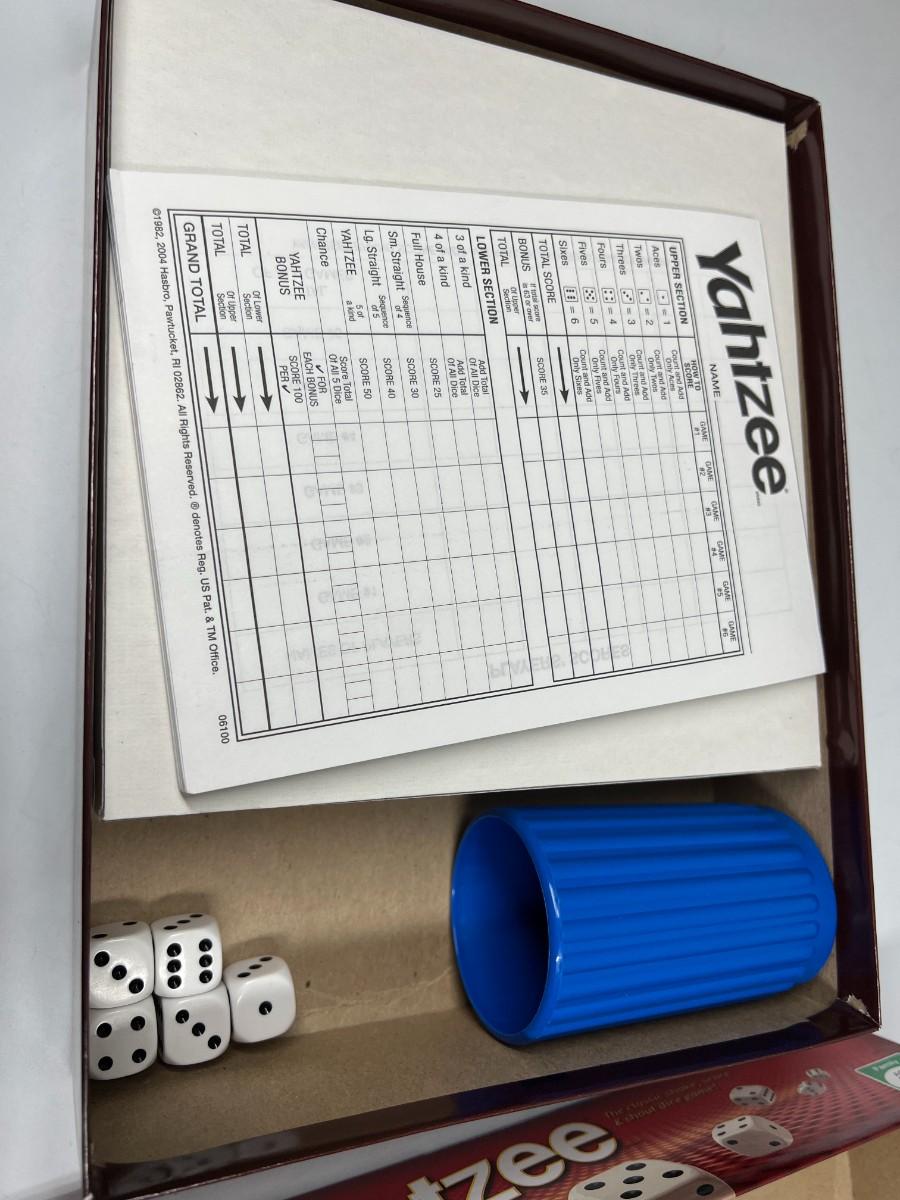 Yahtzee Classic Family Friends Dice Game, there is no significant damage to the pieces and is in good playable condition. Does not come with the chips, there is still more player sheets available for more games. Check pictures for more details and for sizing.