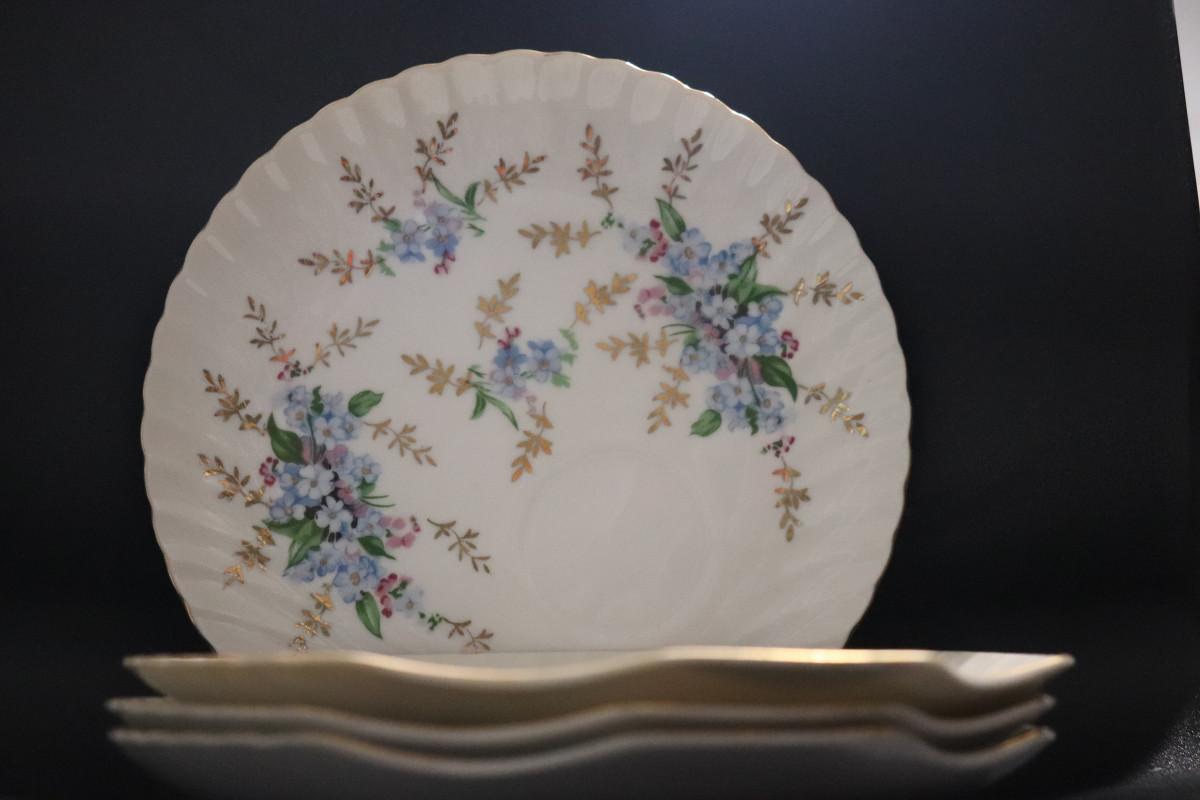 YAM86 by Yamaka Blue Flowers, Pink & Gold Leaves plates (set of 4)