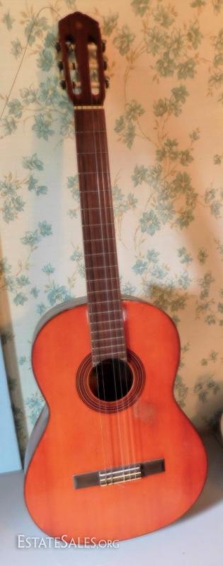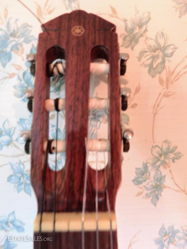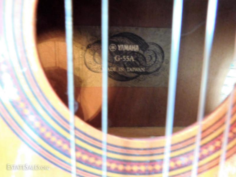 Yamaha acoustic guitar model G55-A. Some scratches and finish weakness. Hand rash visible at hole. Needs new strings. No visible sign of neck warping or cracks in body. Needs cleaning.