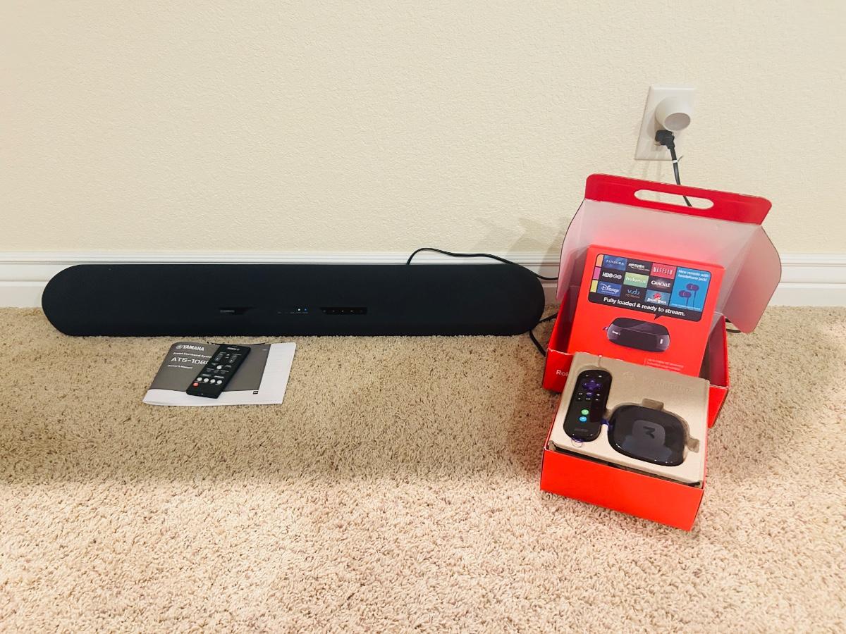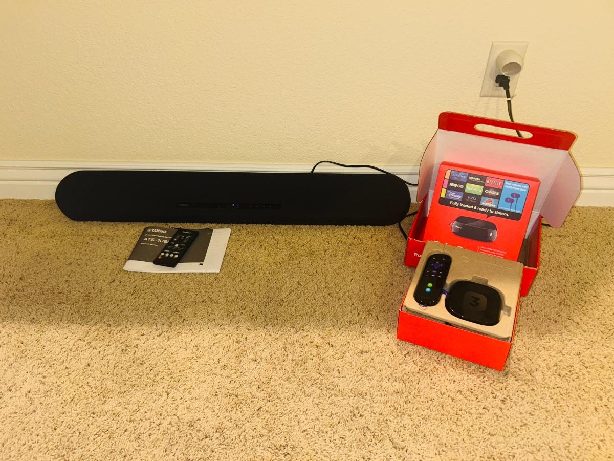 YAMAHA ATS-1080 FRONT SURROUND SYSTEM SOUND BAR AND A NEW ROKU 3