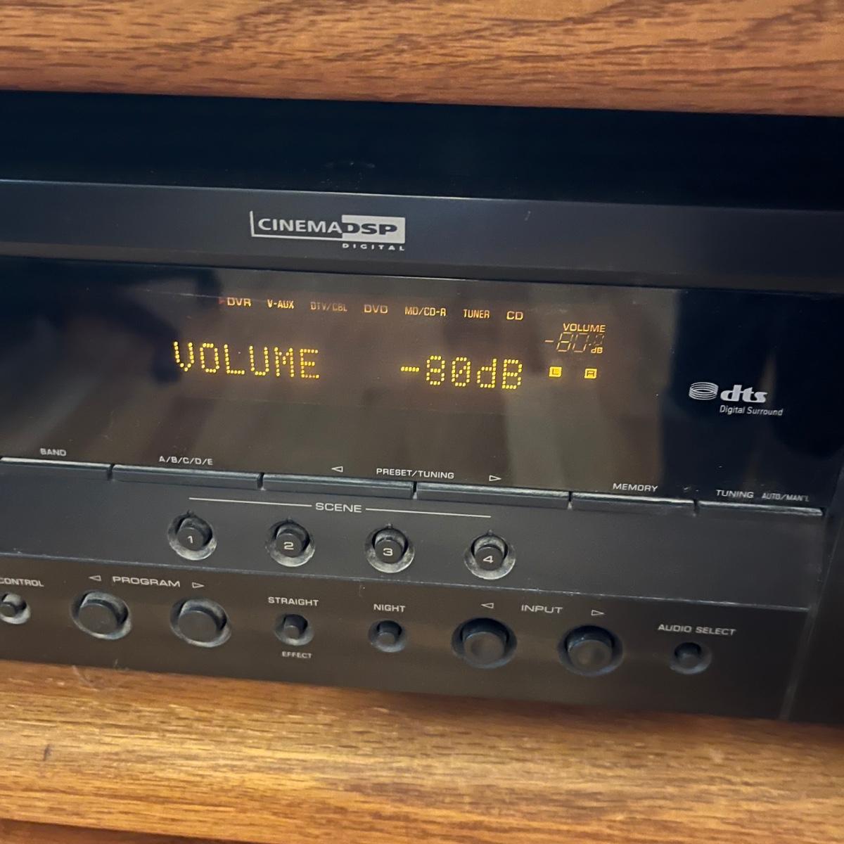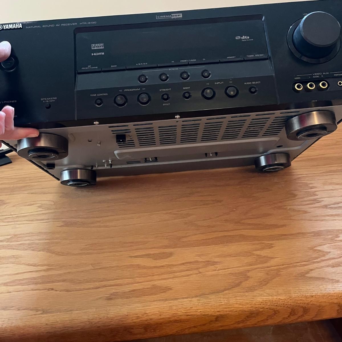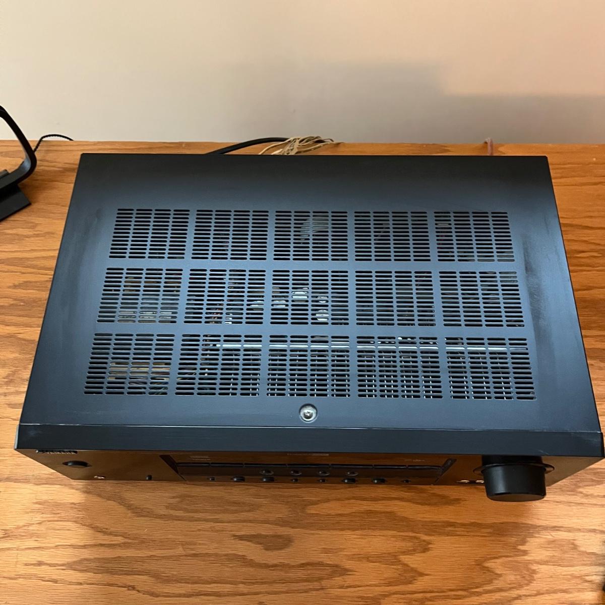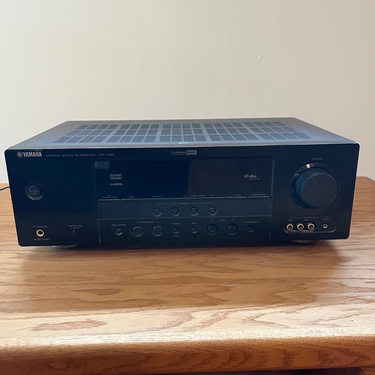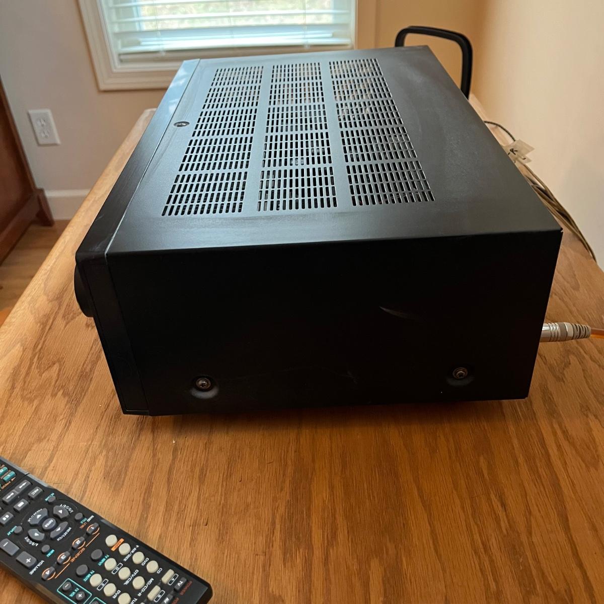 Yamaha AV Receiver measures 17” x 11.5” x 6”H. Includes an AM loop antenna and remote control. Receiver powered on when plugged in. Shipping available.