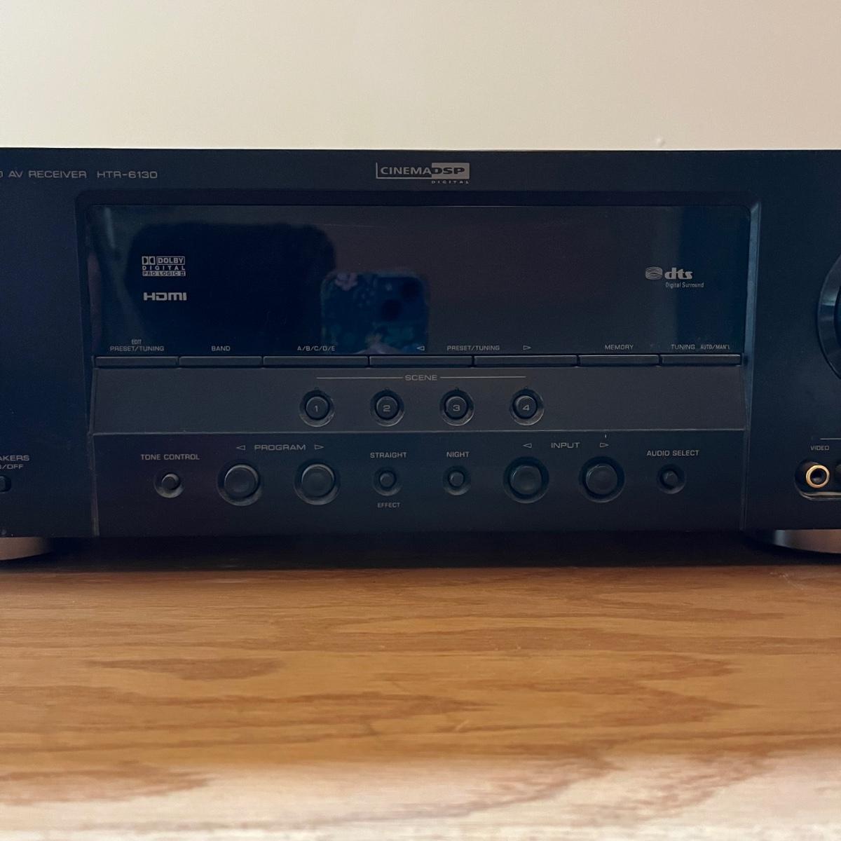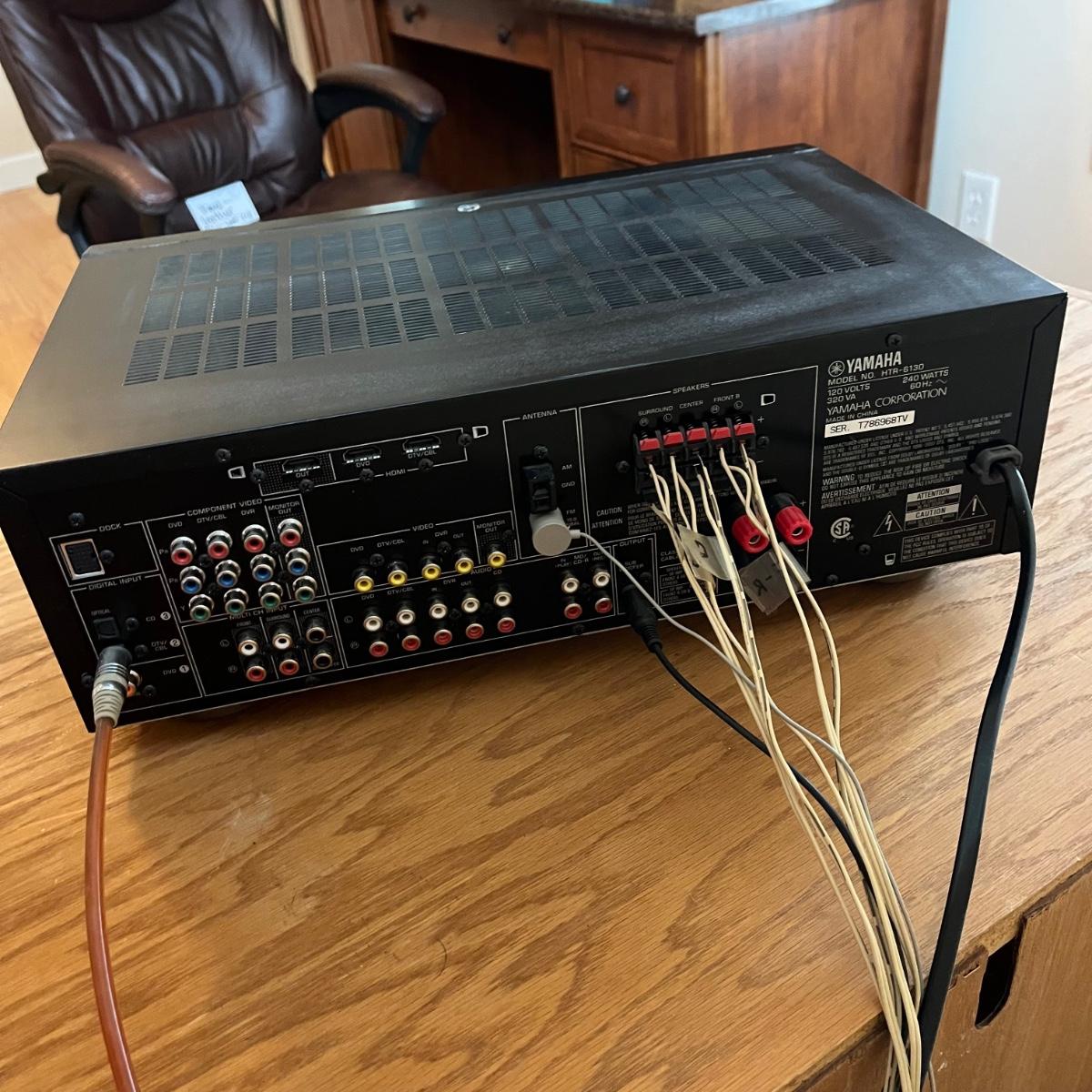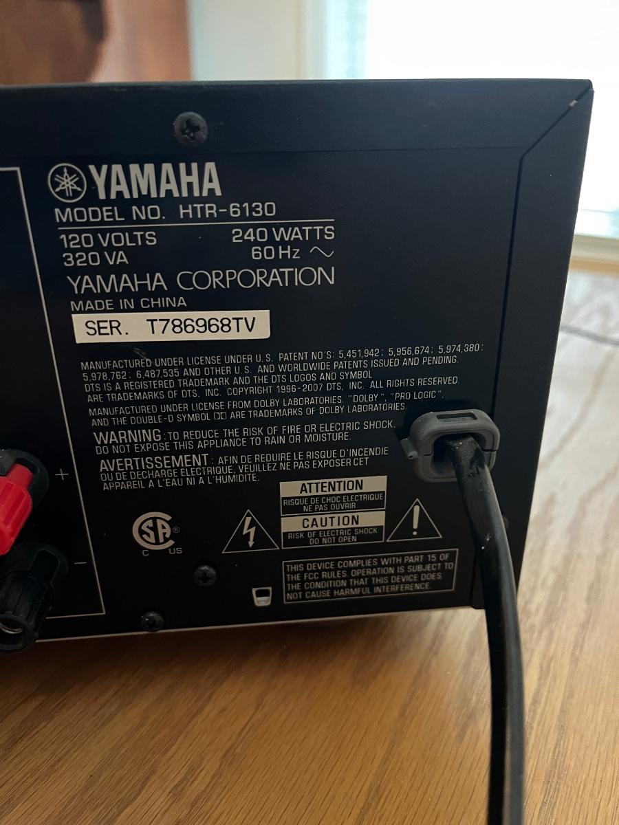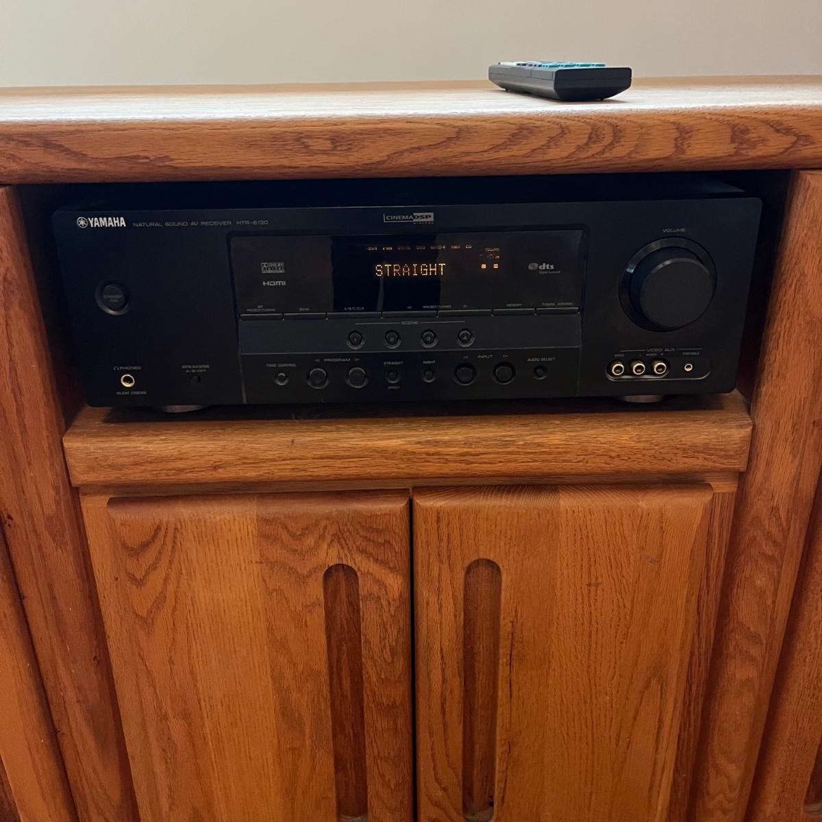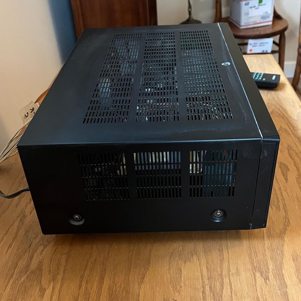 Yamaha AV Receiver measures 17” x 11.5” x 6”H. Includes an AM loop antenna and remote control. Receiver powered on when plugged in. Shipping available.