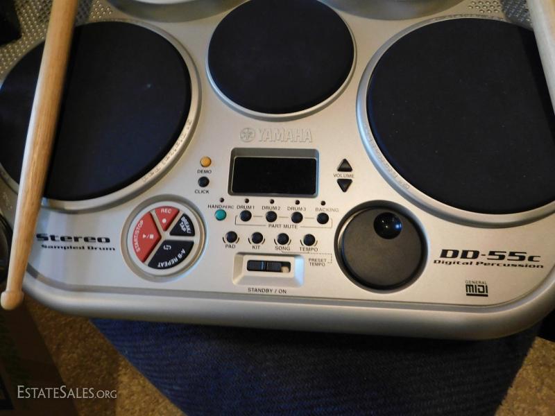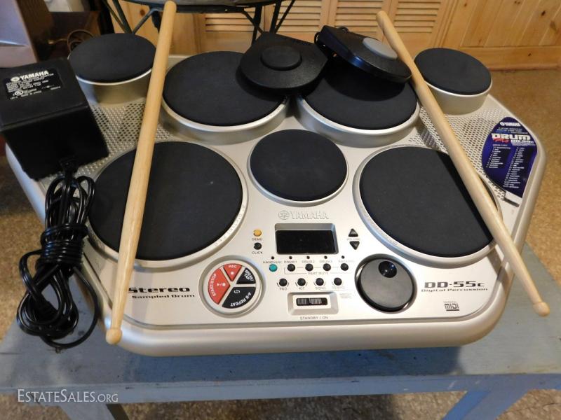 Yamaha Drum Pro DD-55c Model electric drum kit comes with drum sticks, two foot pedals, and chord. Appears to have been rarely used. In really good shape.