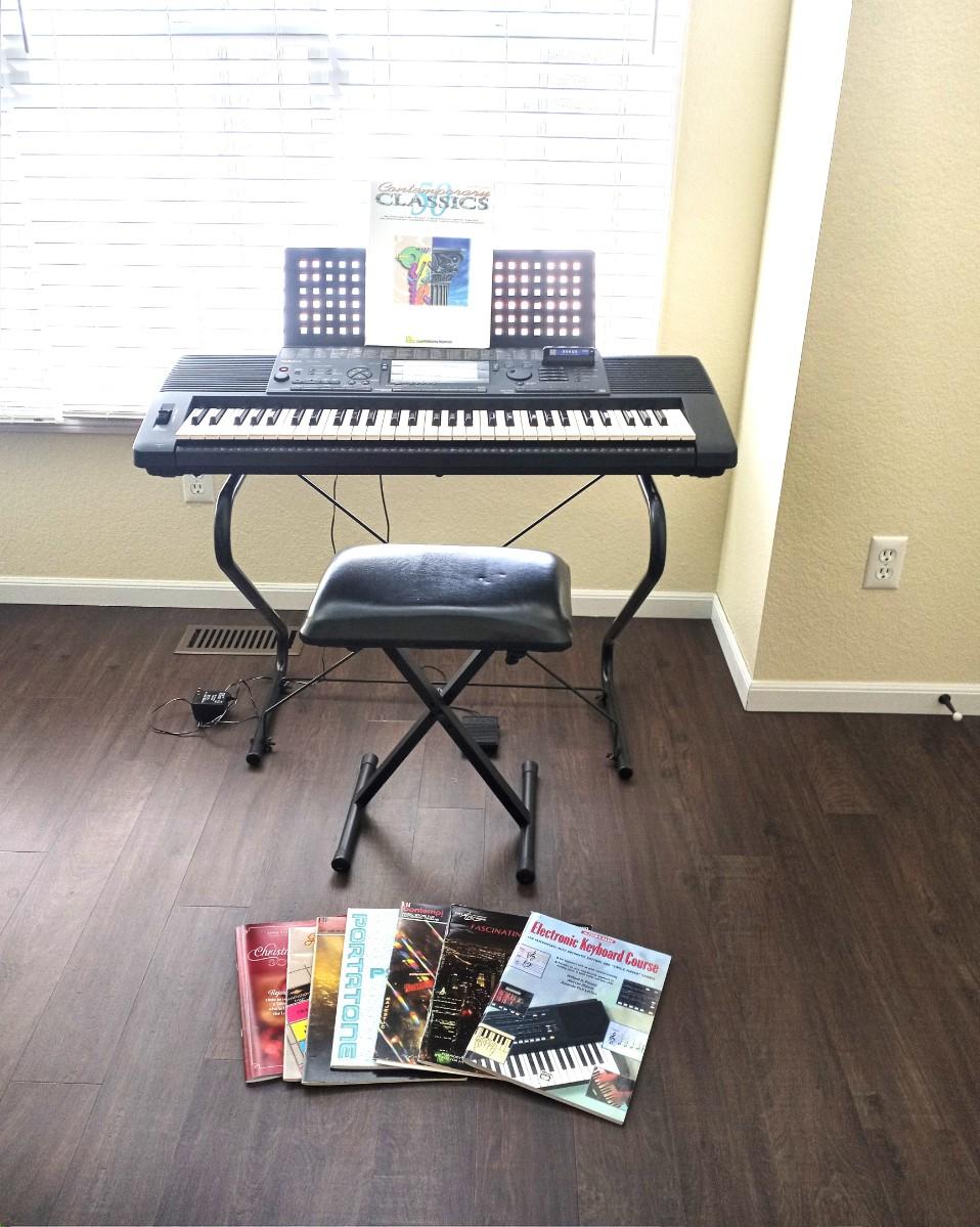 YAMAHA ELECTRIC KEYBOARD ON STAND WITH STOOL