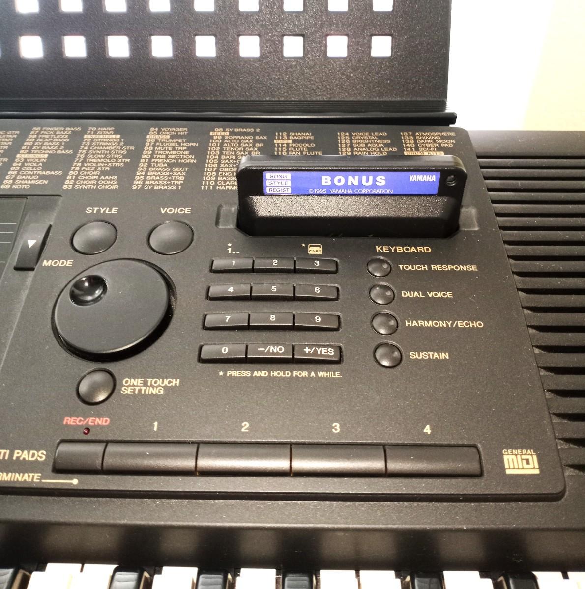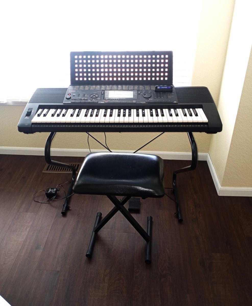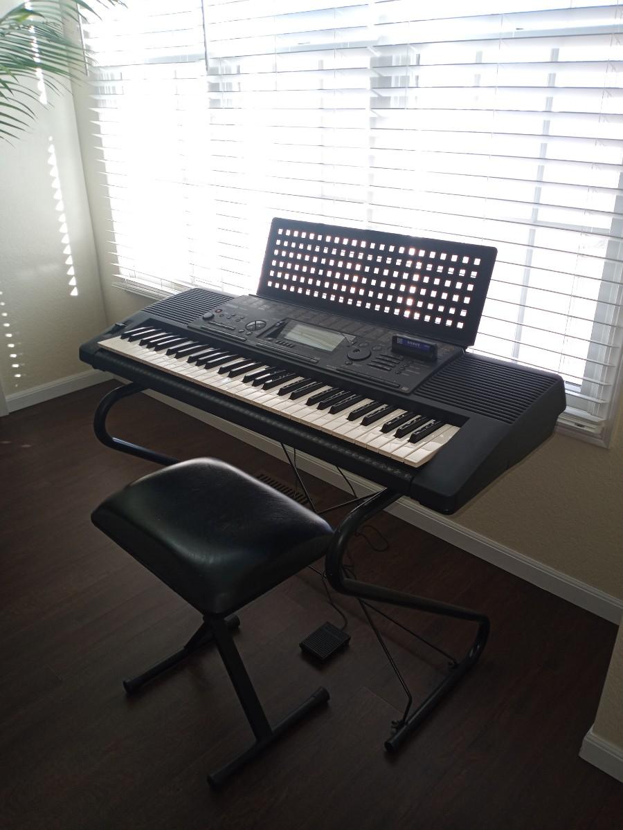 MODEL PSR-520 YAMAHA ELECTRIC KEYBOARD WITH STOOL APPROX.38"W STOOL 16X12