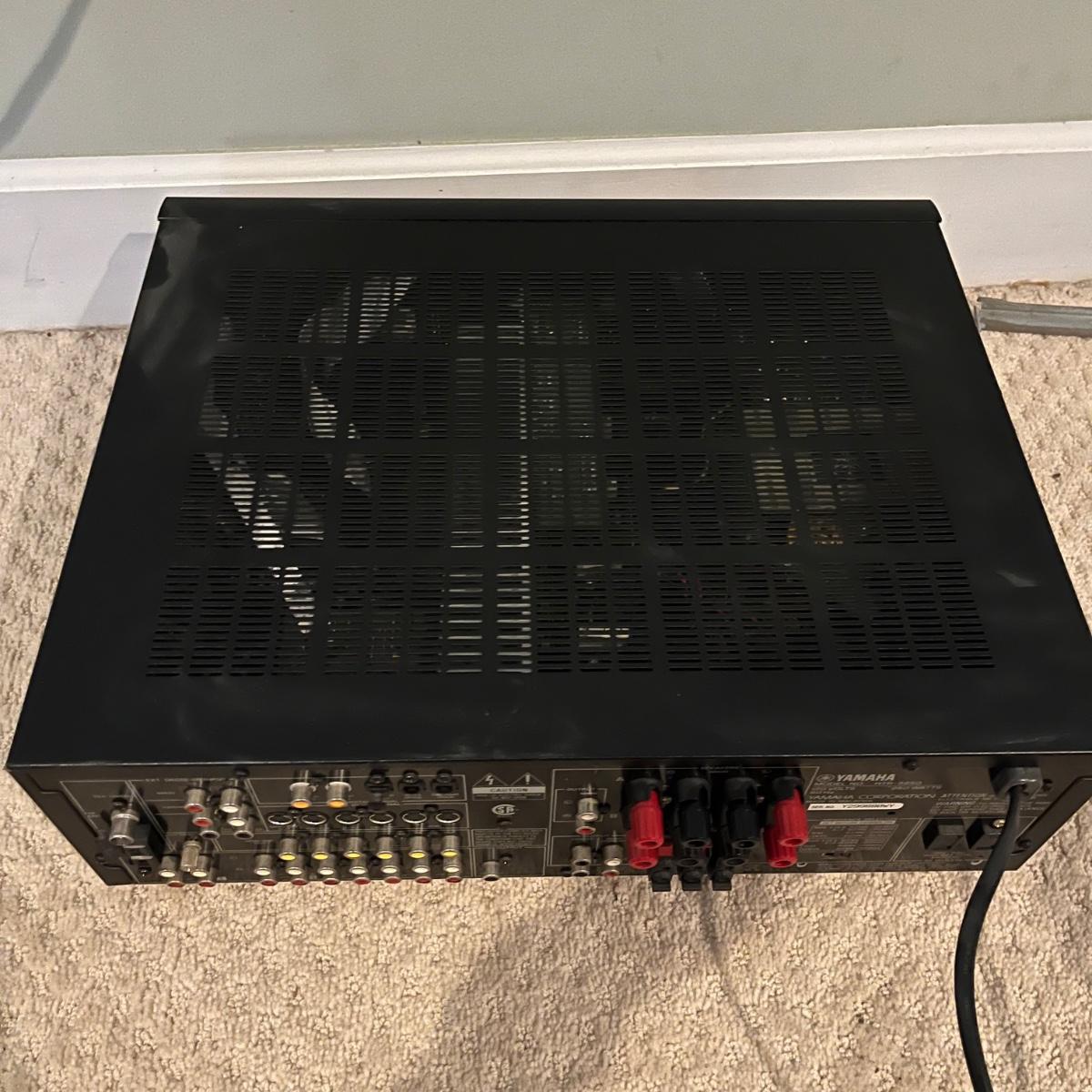 Lot includes a Yamaha HTT-5250 A/V receiver with remote. Receiver worked when tested and measures 14” x 17” x 6”.