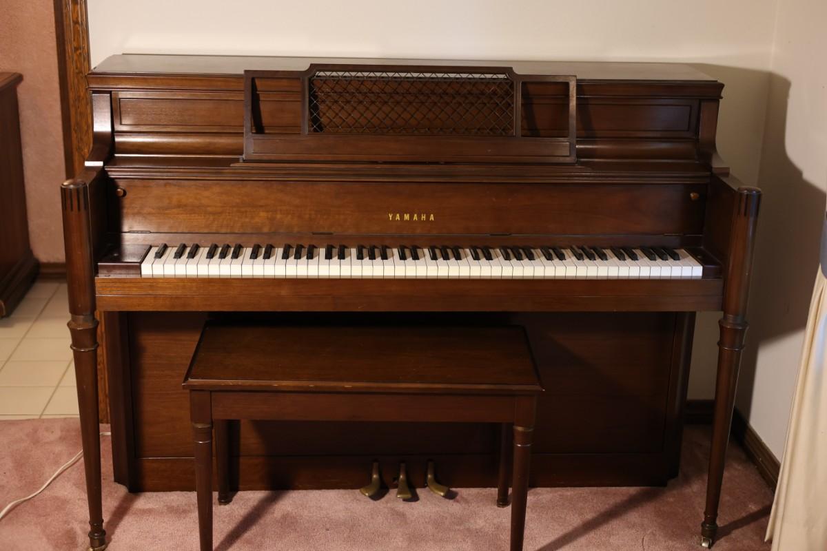 1972 Yamaha M2F 1972 Walnut Upright Piano with bench.