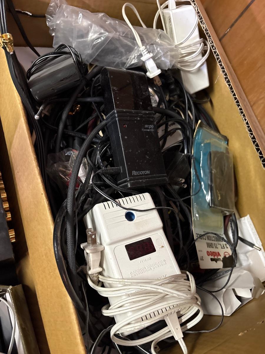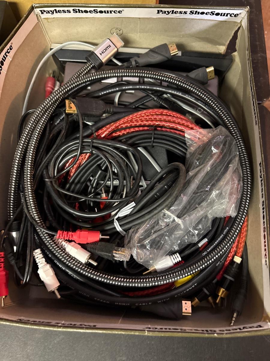 Large variety of stereo and other cords plus the Yamaha DVD player