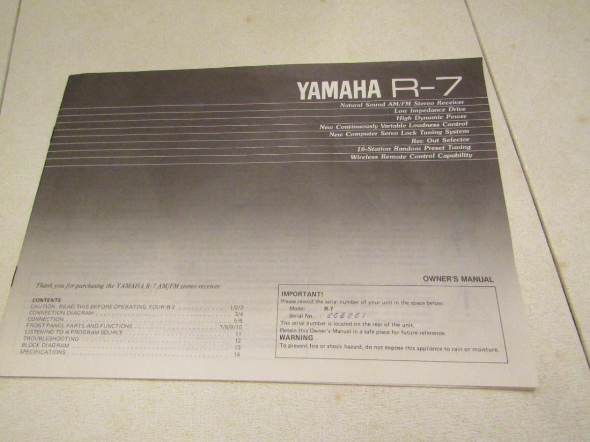 Yamaha Natural Sound Stereo Receiver R-7- No Remote. owner states item in working condition.