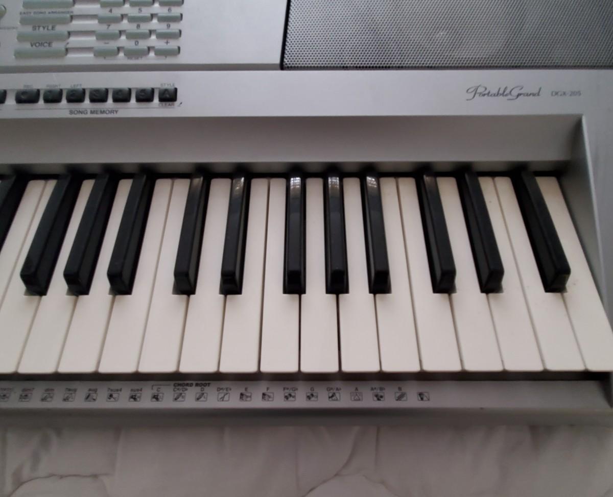 Good condition, and works well. There is one small dent, it has a folding stand.