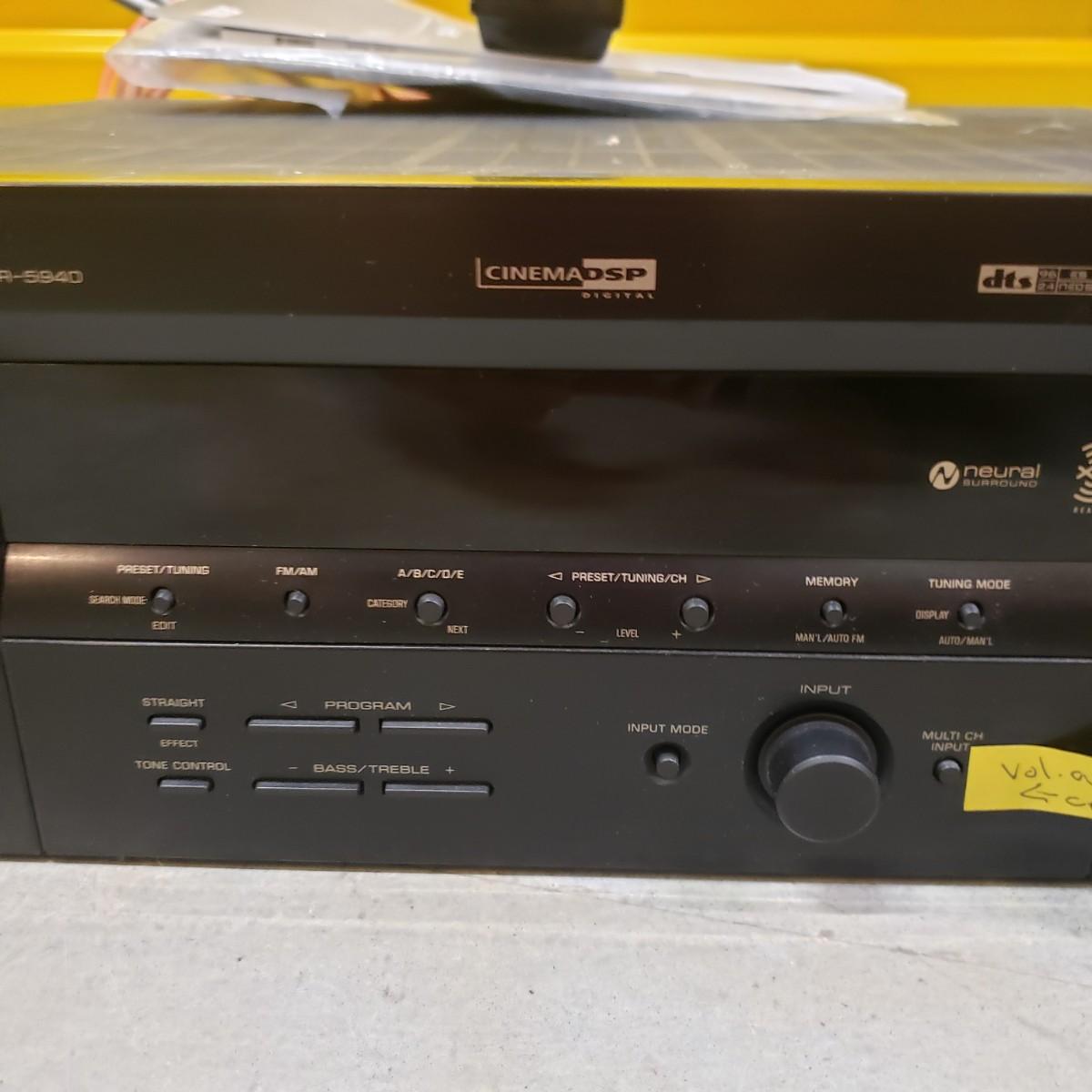 1. Yamaha receiver measuring 17"x14"x5.5" with a model # HTR-5940.
