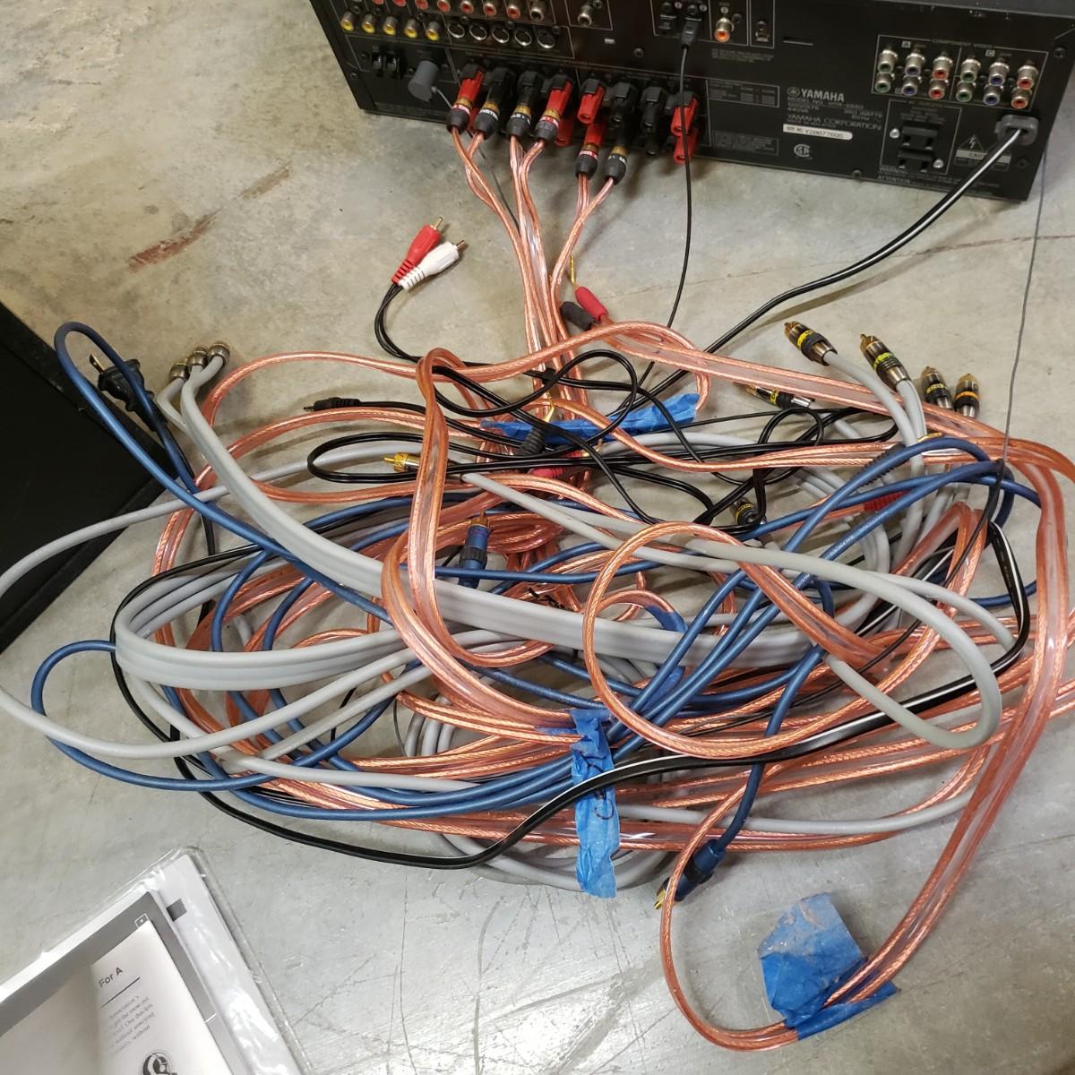 The system worked when plugged in. All the cords and speaker wires are included and already hooked into the receiver.