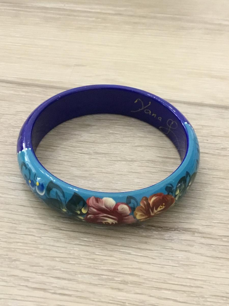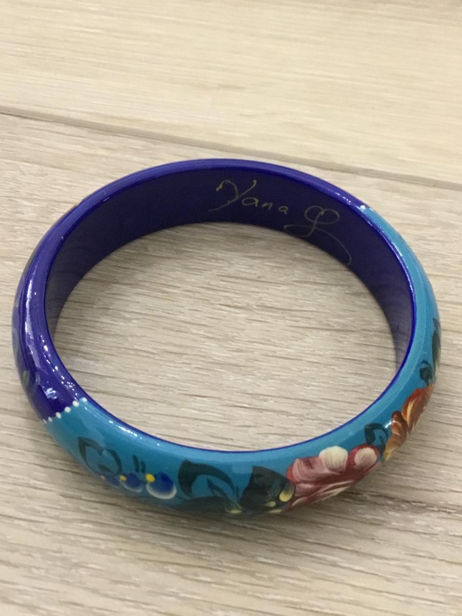 Yana L marked wooden blue painted bracelet