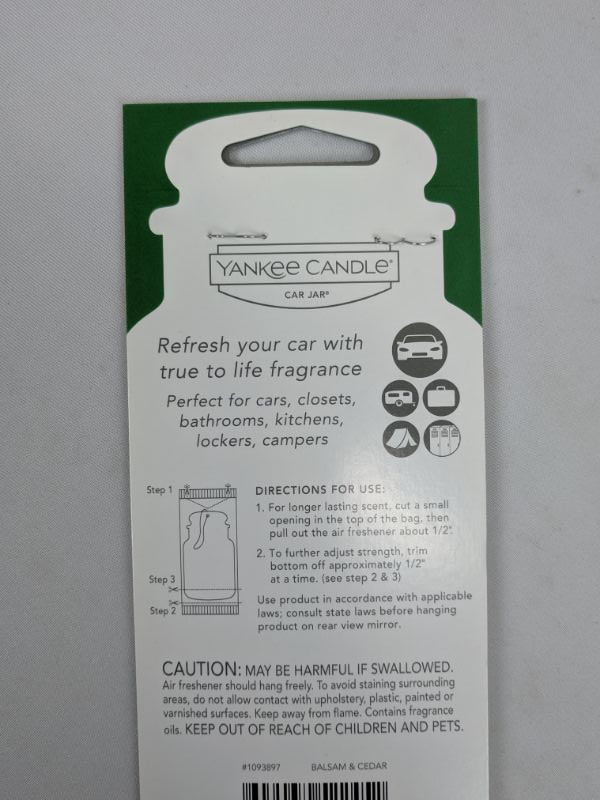 Yankee Candle Car Jar Balsam & Cedar Air Freshener, Set of 3 - New
