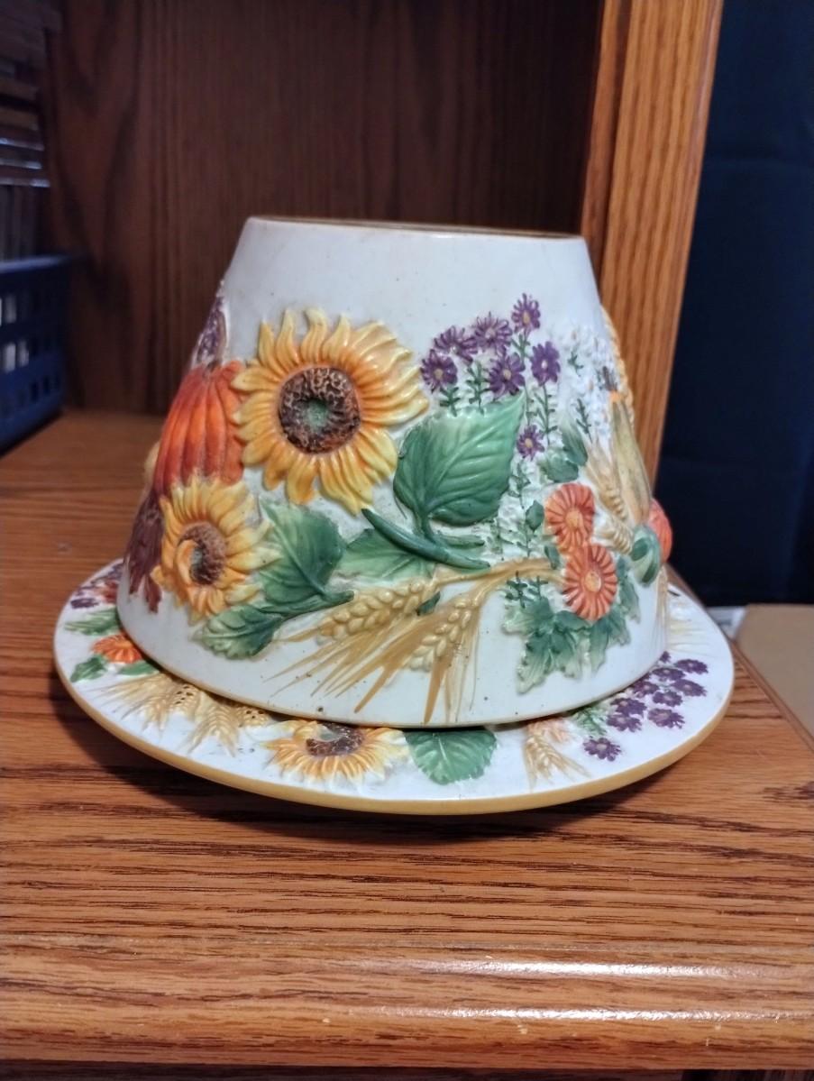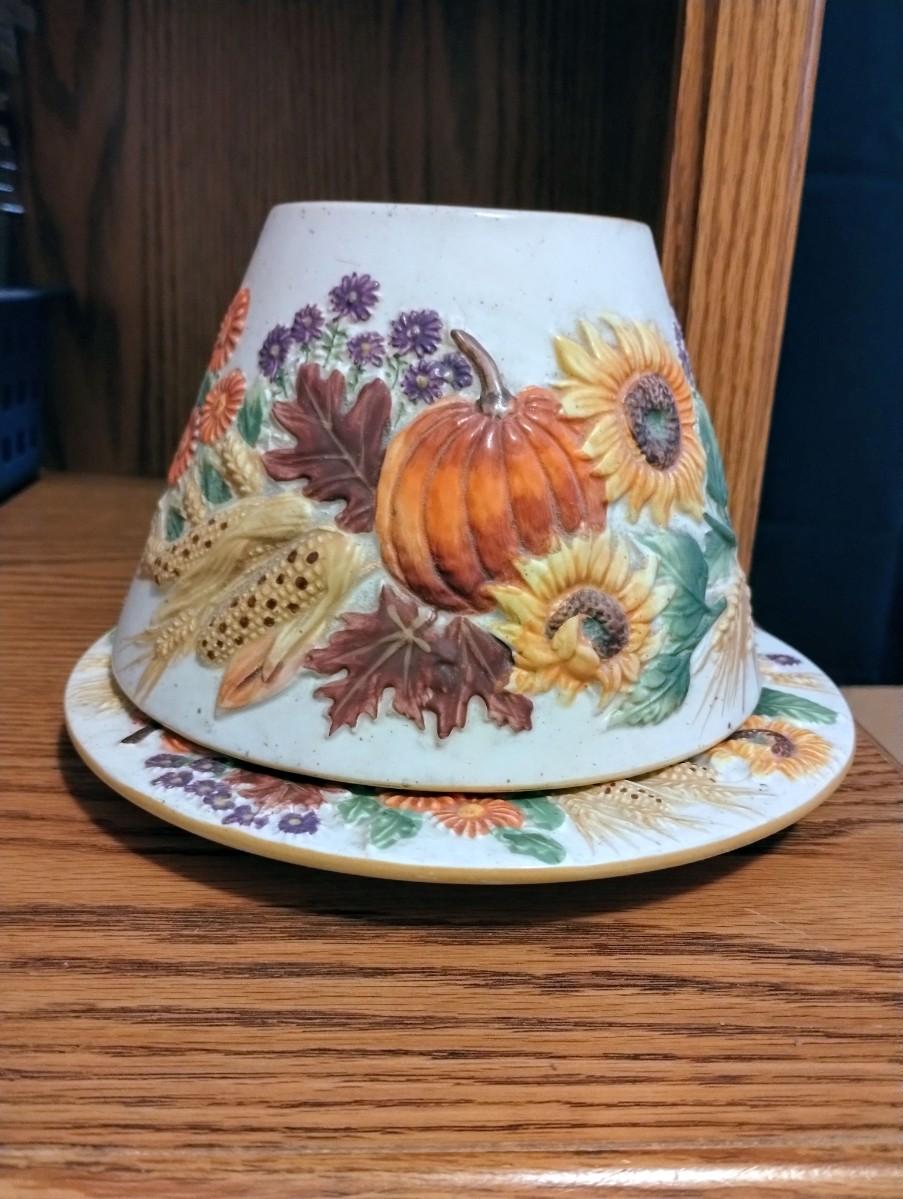 Yankee Large Jar Candle Shade & Plate Pumpkin Sunflower Fall Thanksgiving