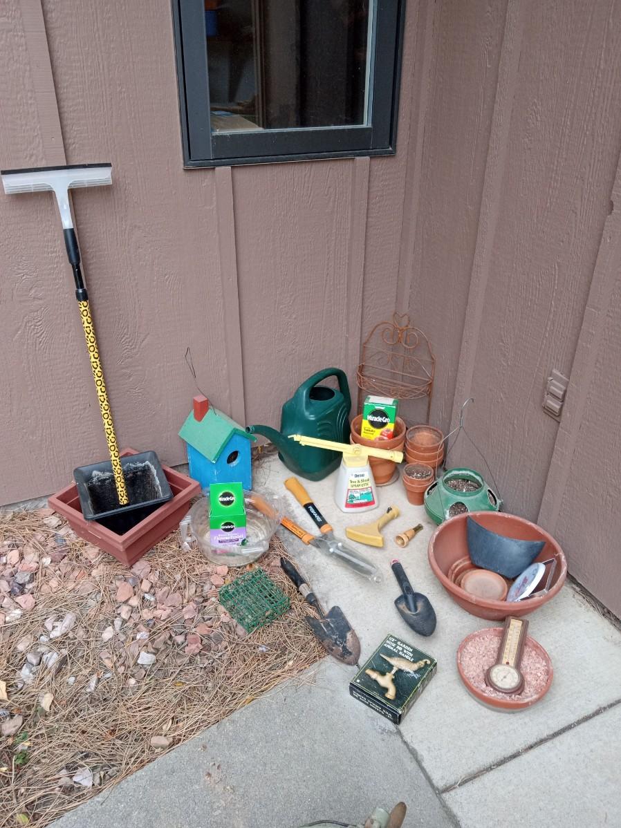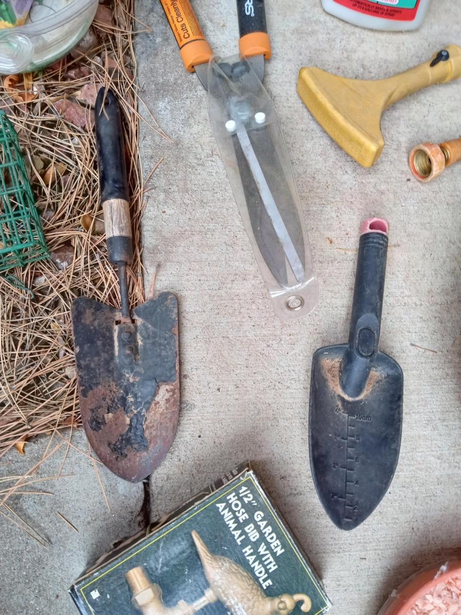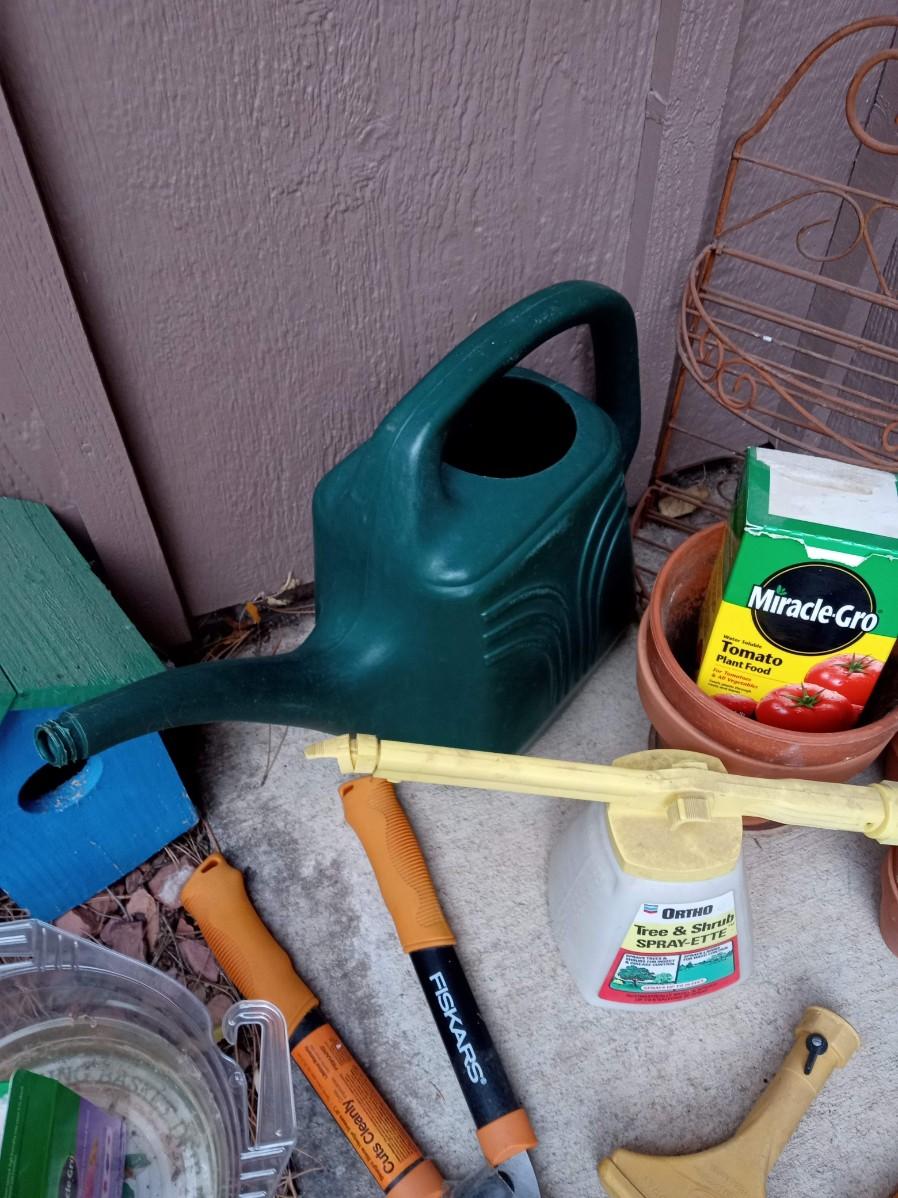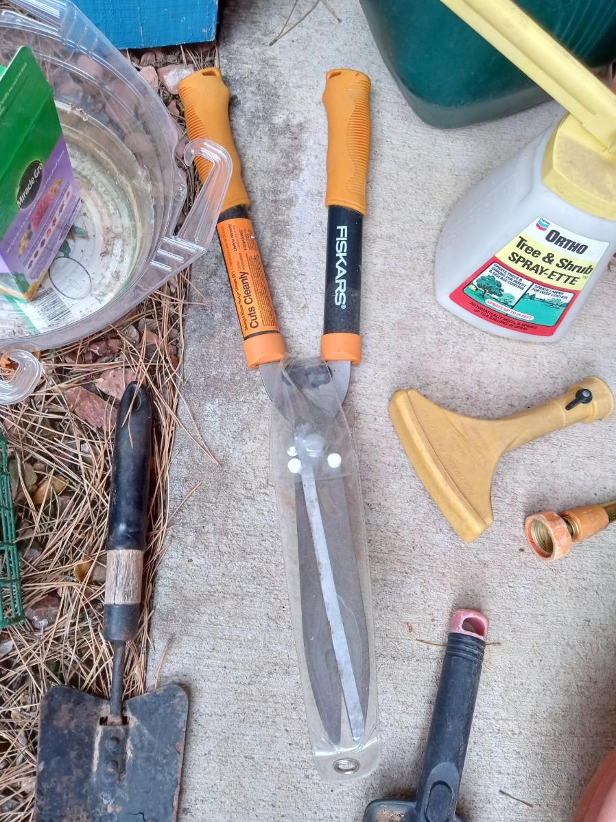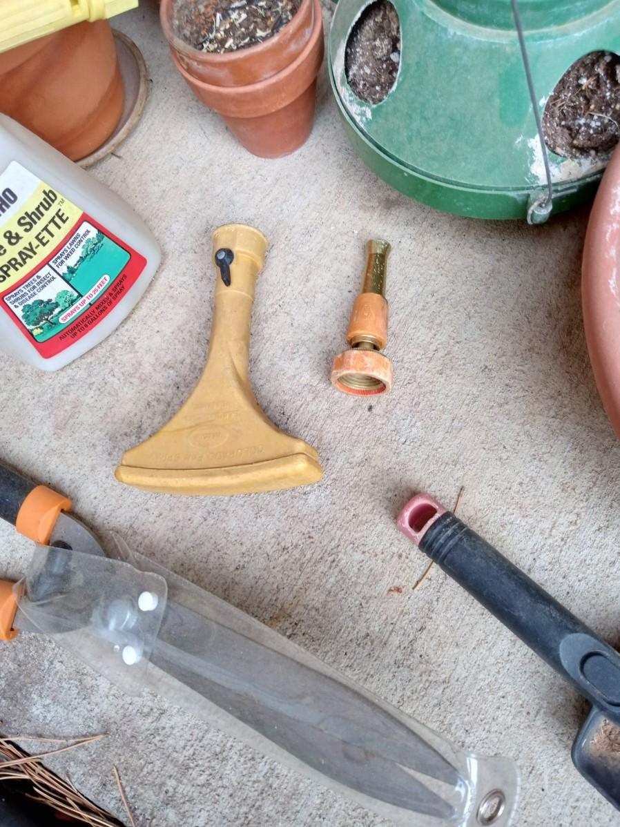 ANIMAL HANDLE SPIGOT, FLOWER POTS, FISCAR HEDGE CUTTERS, HAND GARDEN TOOLS, WATERING CAN AND MORE