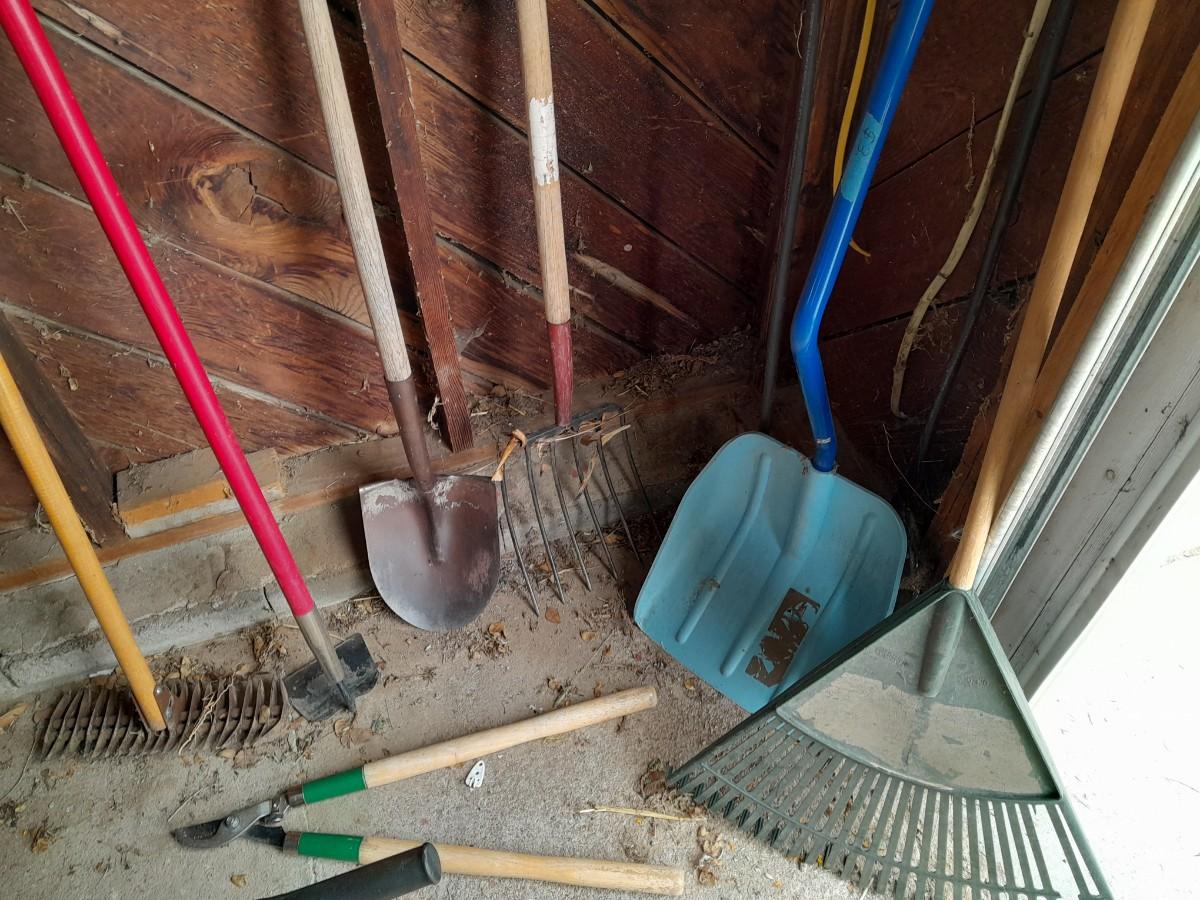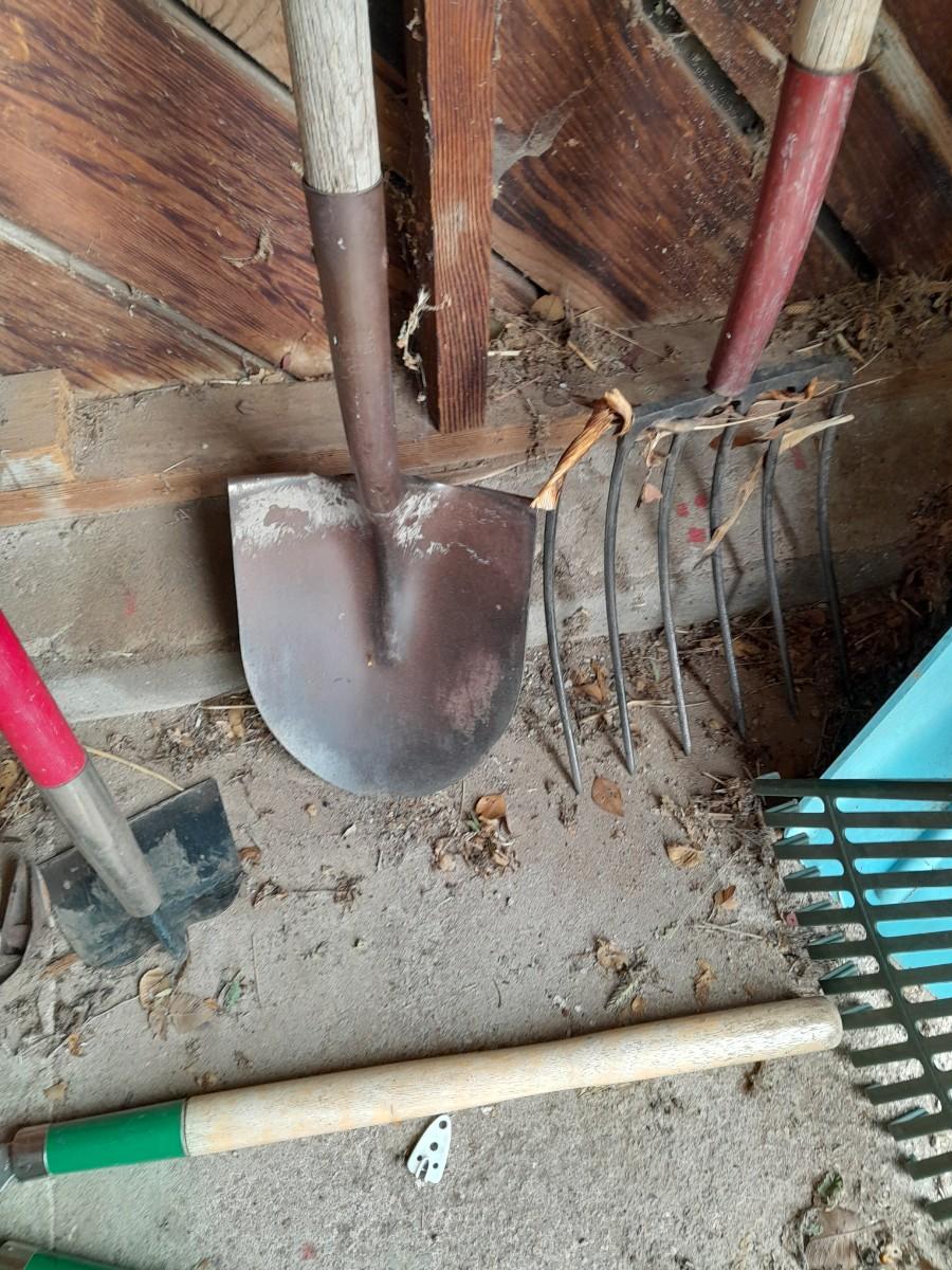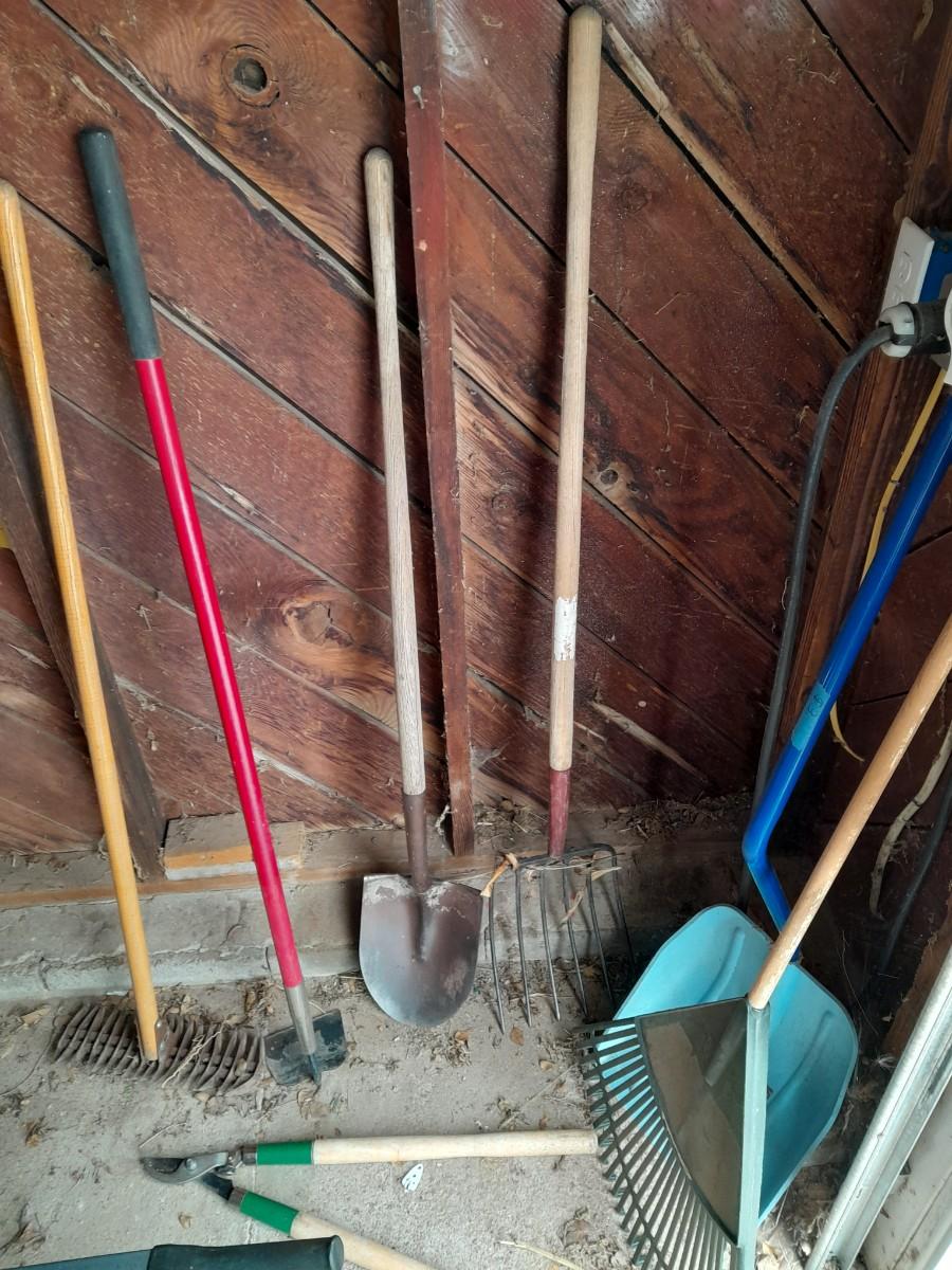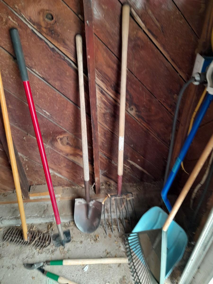 YARD AND GARDEN TOOLS PITCHFORK, SHOVEL, HOE, SNOW SHOVEL AND MORE