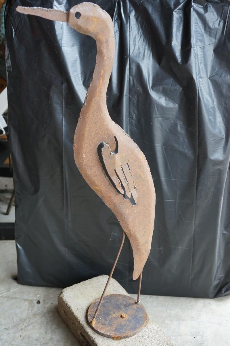 measures: 35 1/2" by 15" and is rests on a metal round platform. This is mounted on a cement block so ready to set in the yard in the garden bed.